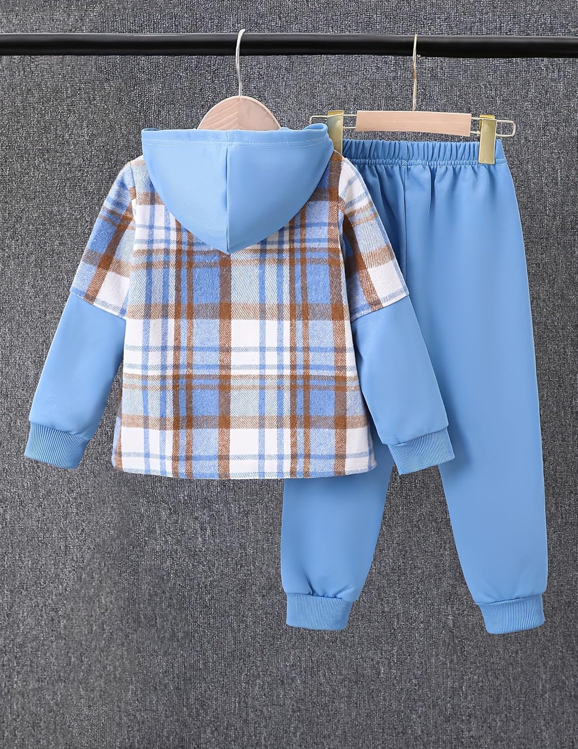 2Pcs Kids Boys Flannel Plaid Shirt Tops Pants Set Hoodie Sweatsuit for Fall Winter Spring Outfits 4-12 Years