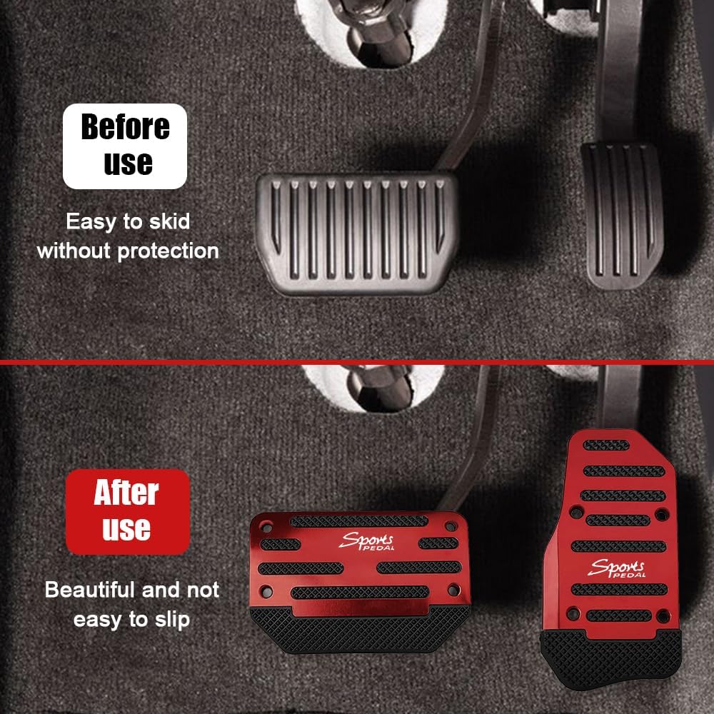 [Universal fit]: Brake pedal covers measure 3.35x 5.11 inches and gas pedal covers measure 2.95 x 5.7 inches. It is universal fit for most automatic transmission models, Perfect fit your gas pedal covers &brake pedal covers, Before purchasing, please measure the size of your car’s gas pedal& brake pedal cover, To ensure that the product is compatible with your vehicle.
