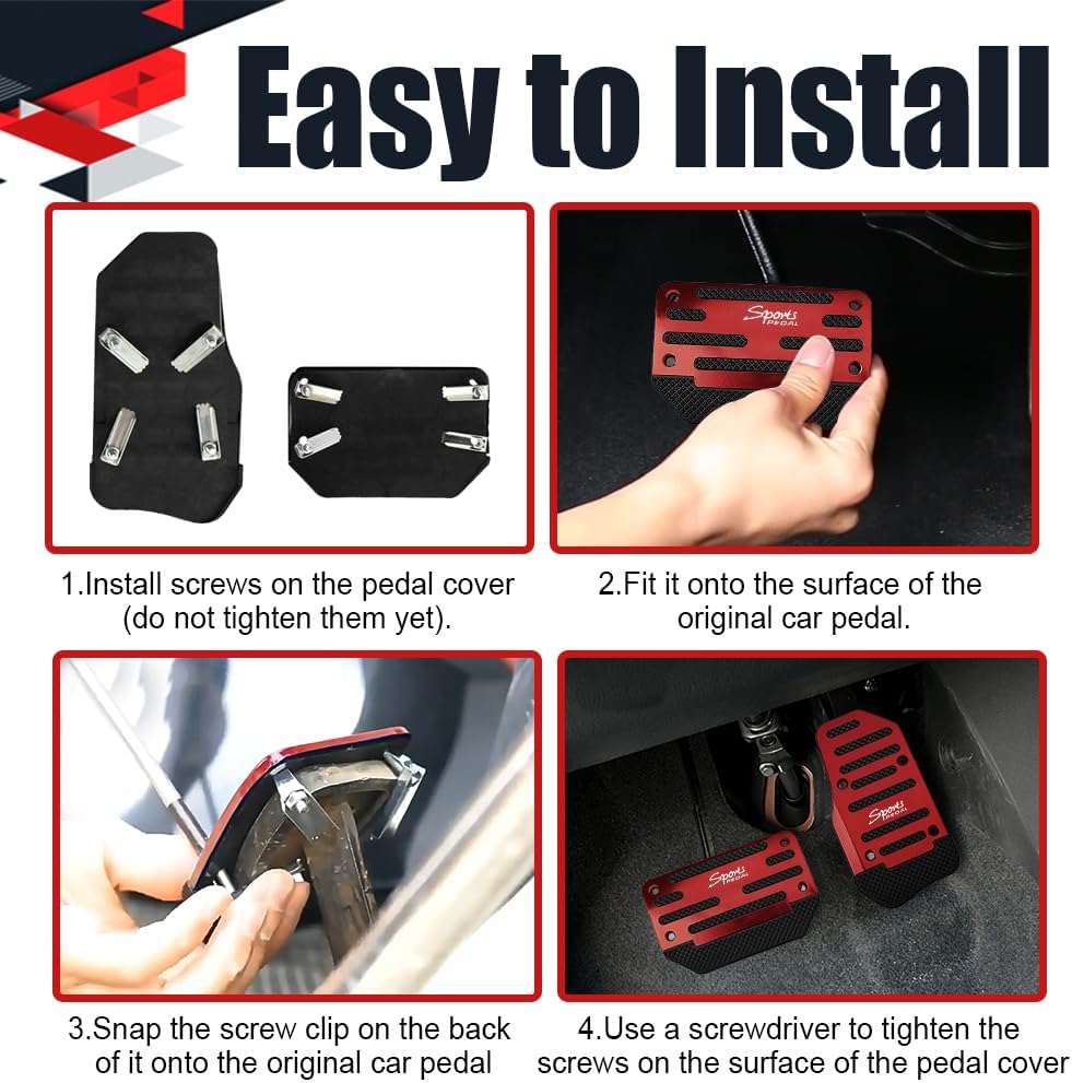 [Easy installation]: The installation of the car Non-Slip pedal pads set is very simple, only screws and screws are needed to secure the product to the original car gas and brake pedals covers. No drilling required, easy installation.
