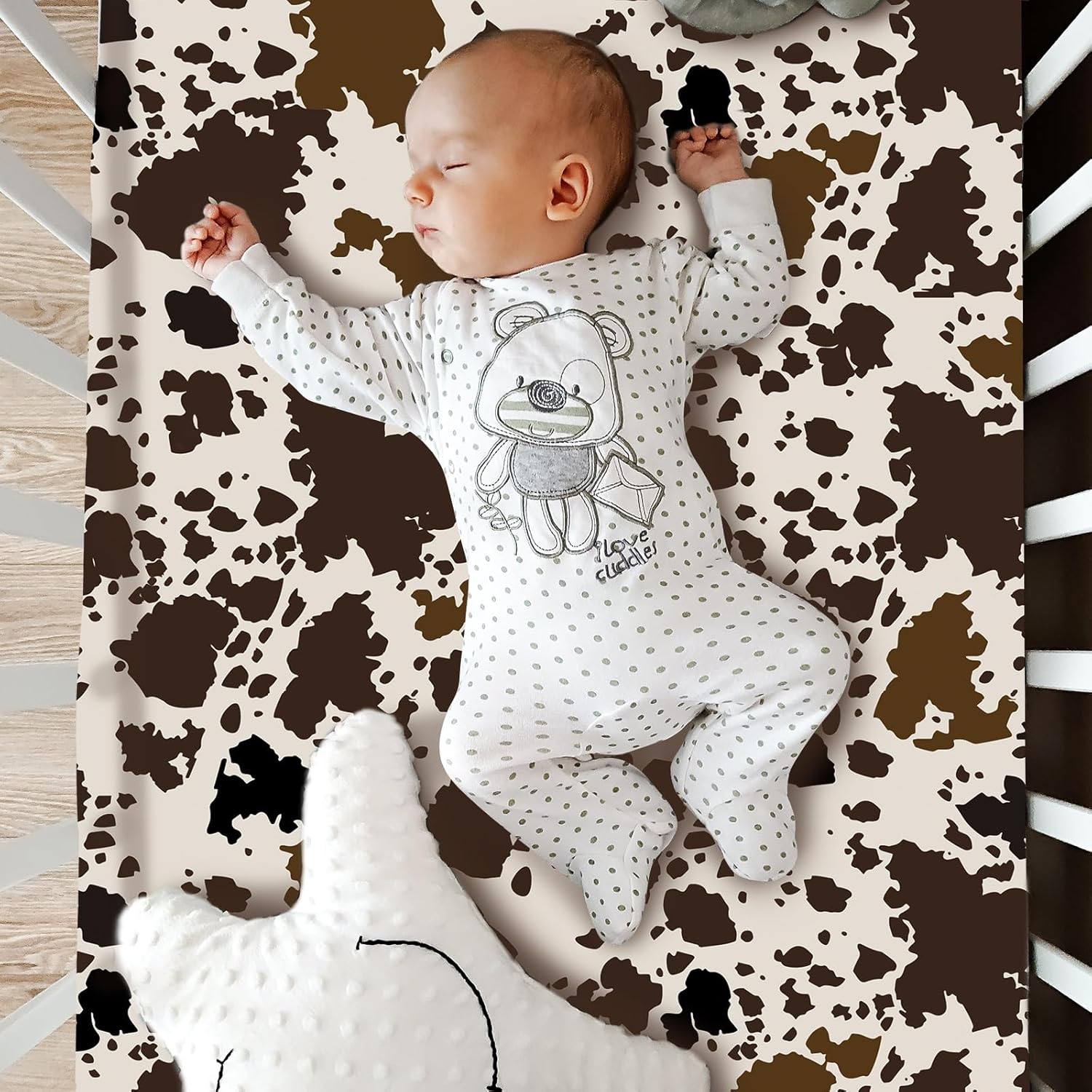 Applicable Sizes: the size of the crib set is suitable for standard baby beds; The size of the cow baby blanket is 32 x 41 inches, the size of the bed sheet is 28 x 52 inches, the size of the bed skirt is 28 x 52 inches, and the hem size of the bed skirt is 14 inches; The bed skirt nicely covers the bottom of the baby crib, helping to keep it clean and beautiful