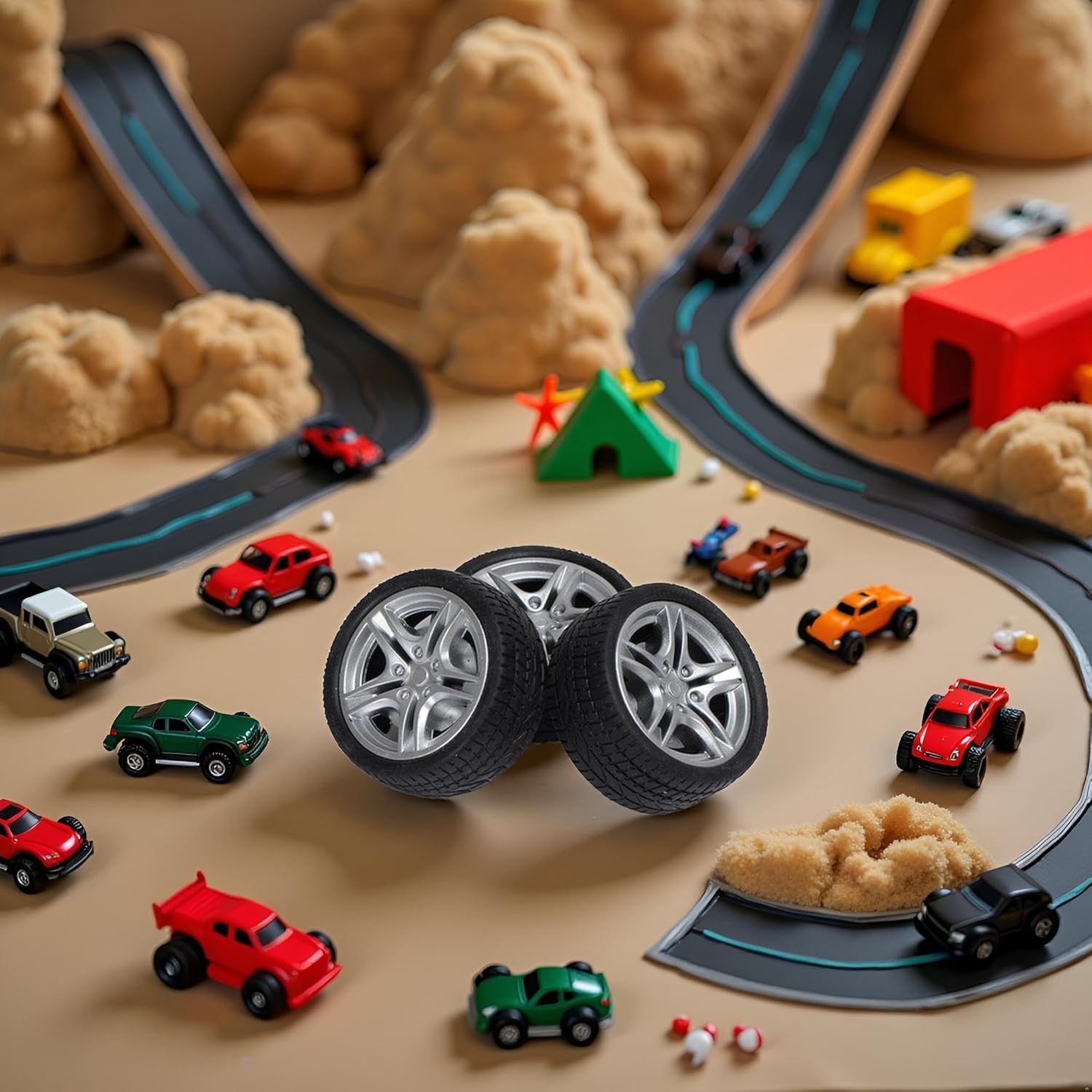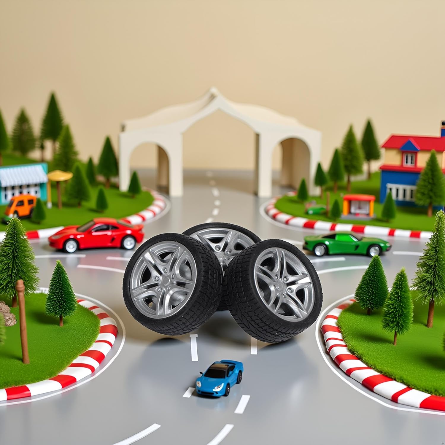 Four tires allow multiple vehicle upgrades or backup replacements. The matte black suits for monster trucks, drift cars, or sci-fi customizations.The black finish blends discreetly with any toy cars aesthetic.