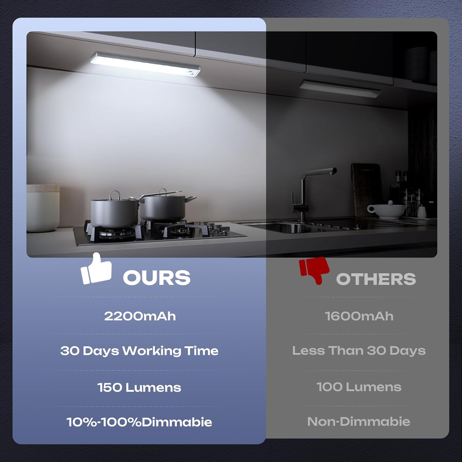 【Super Large Battery Capacity】: Our under cabinet light is equipped with a powerful 2200mAh rechargeable battery,It can work continuously for 8 hours. With USB-C fast charging