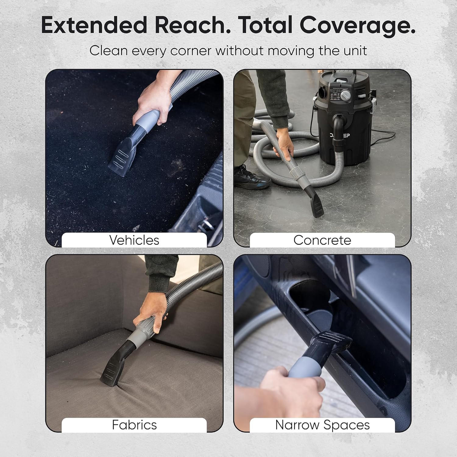 1.5-INCH HEAVY-DUTY HOSE DIAMETER – Improves airflow and helps reduce clogging when vacuuming larger debris compared to smaller household hoses