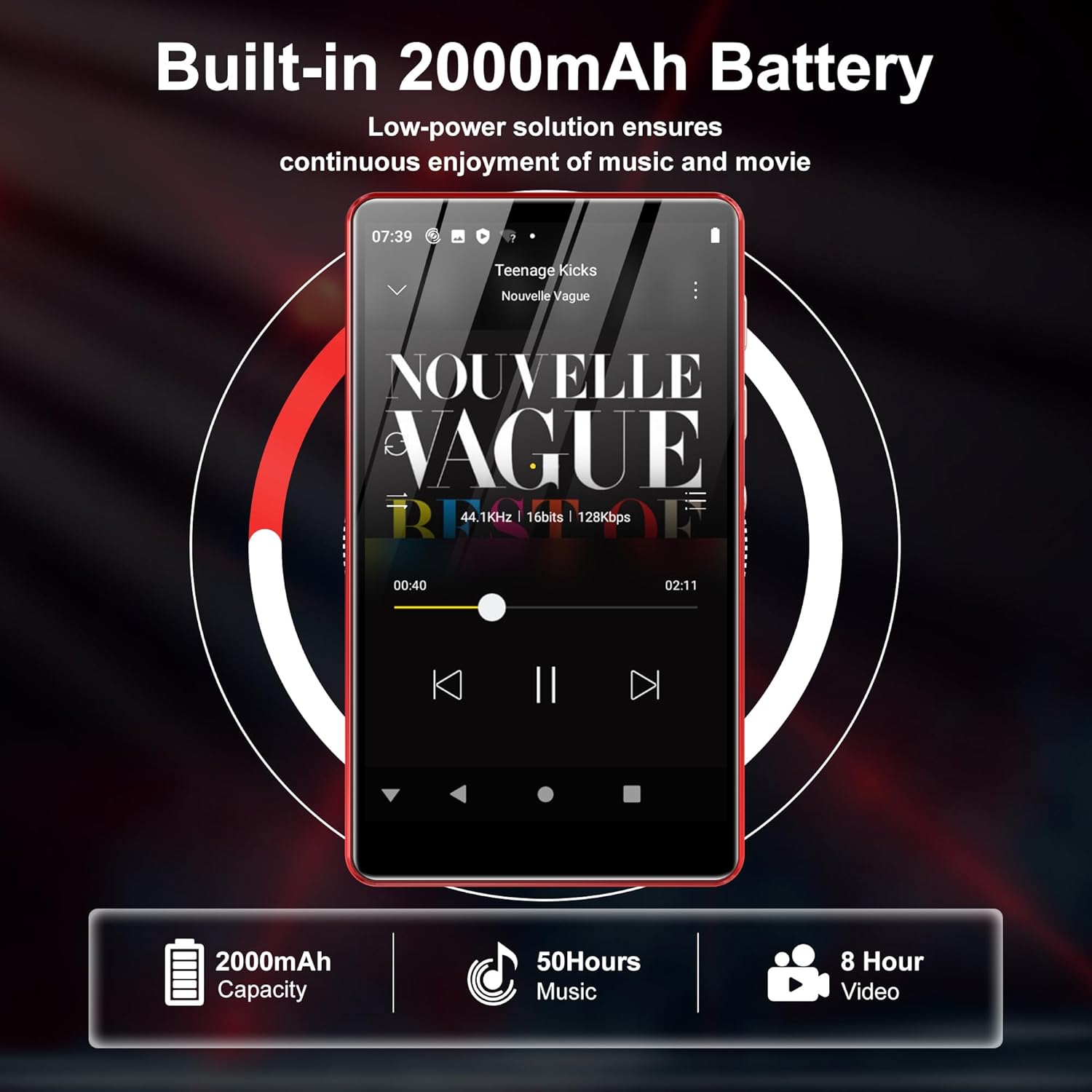 2000mAh Battery: 35H Music Playback & 3-5 Months Standby. This smart MP3 player is equipped with a 2000mAh Type-C rechargeable battery. After a full charge, it supports up to 40 hours of continuous music playback and an impressive 3–5 months of standby time—your music never stops, and this player brings you even more surprises.