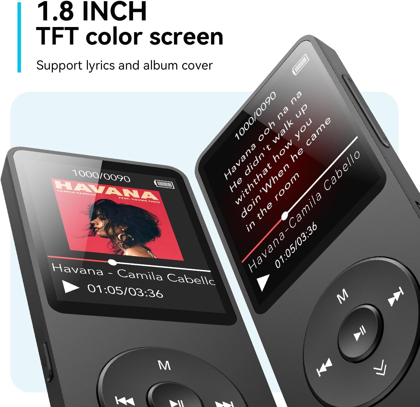 【 Slim design, easy to use】A02 Music Player designed with classic buttons and simple navigation. Also great audio player for kids. Download is easy, Just drag and drop the music file or folder directly when connecting to computer. Works perfectly with Car via AUX port.