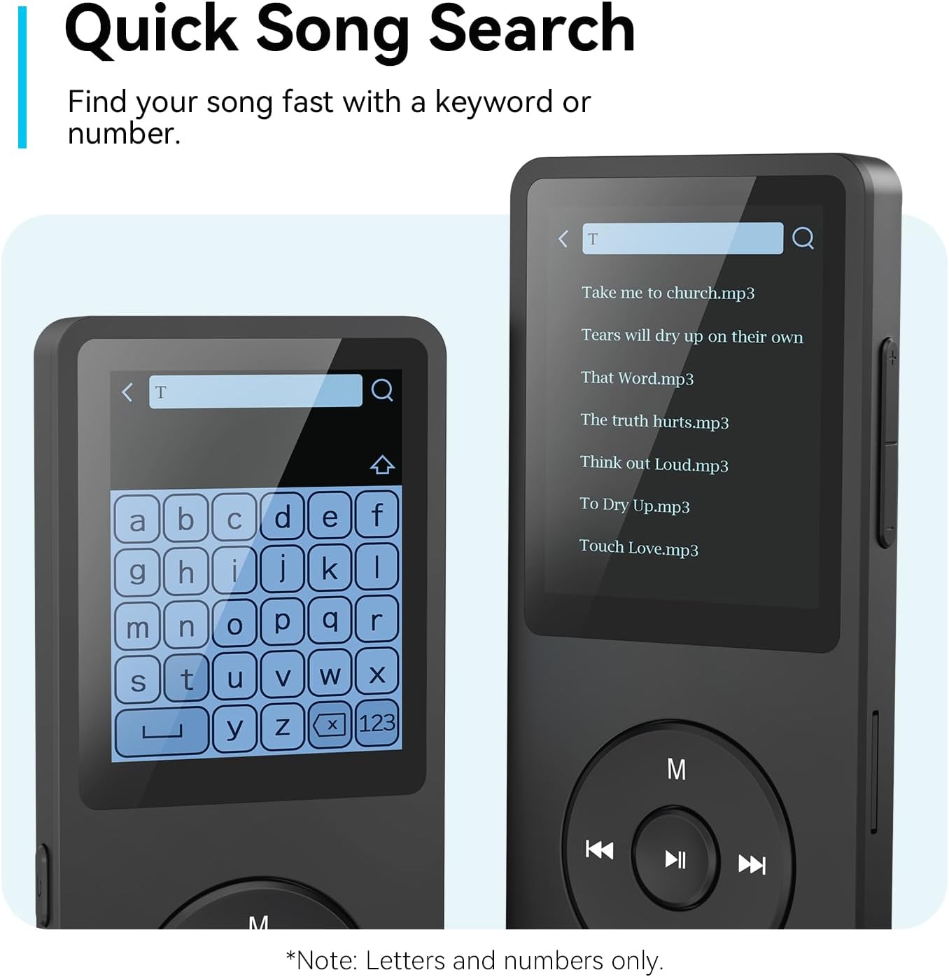 【Bluetooth 5.3 Technology 】 AGPTEK MP3 player adopts upgraded Bluetooth 5.3 has better compatibility, stable signal and reduces the power consumption of the music player. You can pair the Bluetooth MP3 Player with your Bluetooth headphones or Bluetooth speakers.[Unable to connect to phone and tablet.]