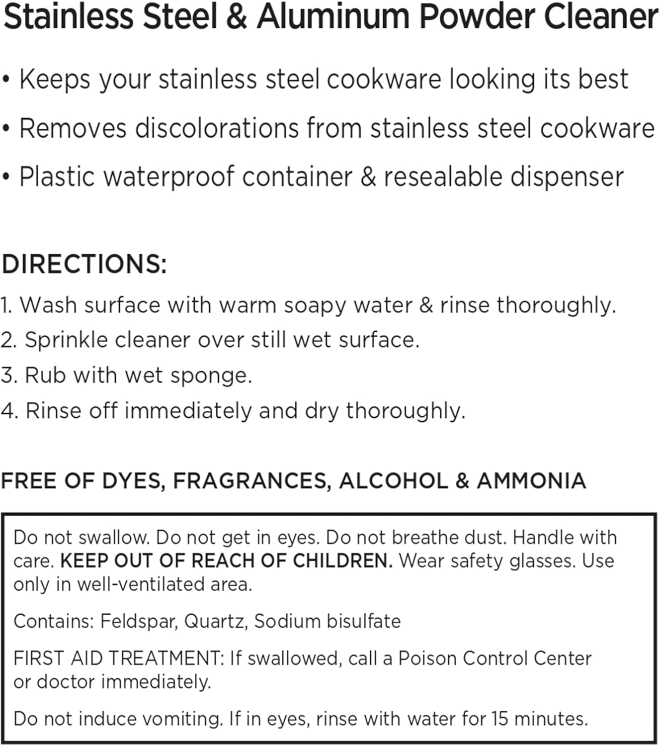 Powder cleanser for stainless and aluminum cookware