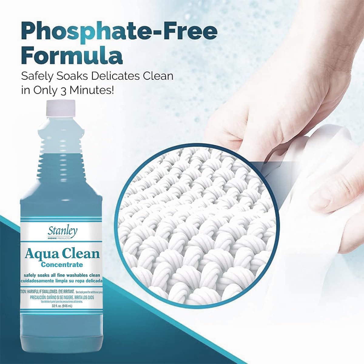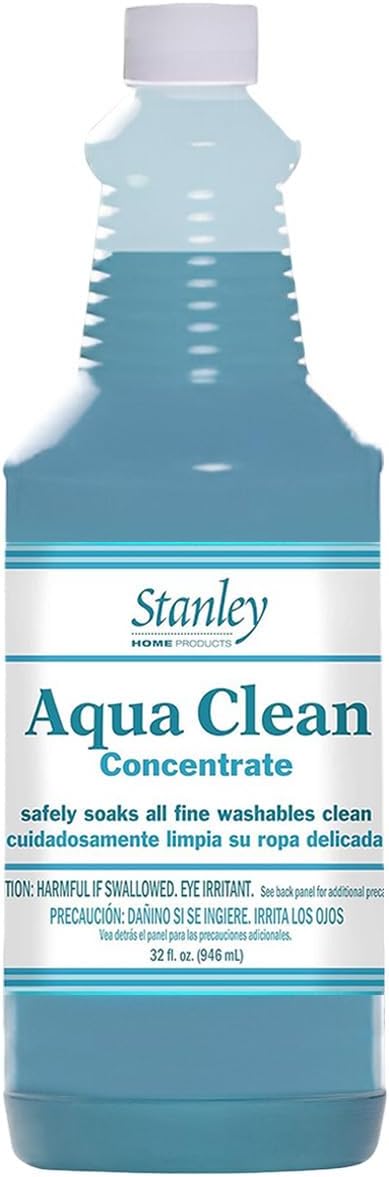 This concentrated Stanley Home Products Aqua Clean formula safely soaks all of your fine washables clean in only 3 minutes! And it does so without any shrinking, stretching, fading or other unfortunate surprises! Free of phosphate, the gentle formula works effectively in hard or soft water, rinses easily and is safe for your septic system.