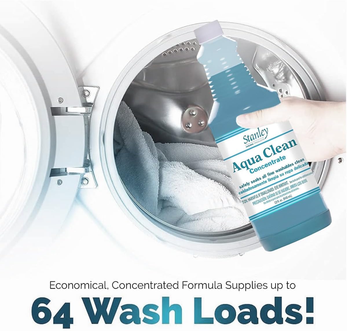 Not only will Stanley Home Products Aqua Clean cut out dry cleaning costs, but you can get more work done with only one bottle. This formula is super concentrated for economical use, so you only need half as much product as the leading cold water wash! That means this 32-ounce bottle will provide you with an incredible 64 wash loads! Less product, less expense and less time. Why would you ever bring your clothes to a dry cleaner again?