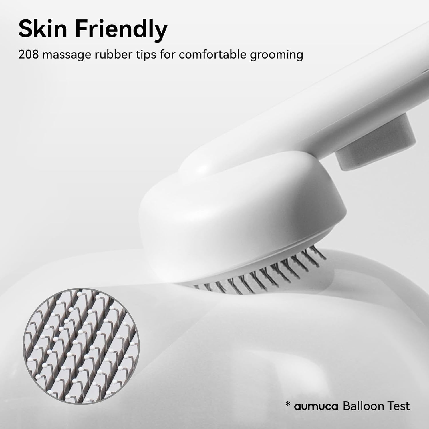 The mental pins on the cat brush with release button have round rubber tips on the ends. Simply put, it can be used as a daily massage comb for cats to enjoy.