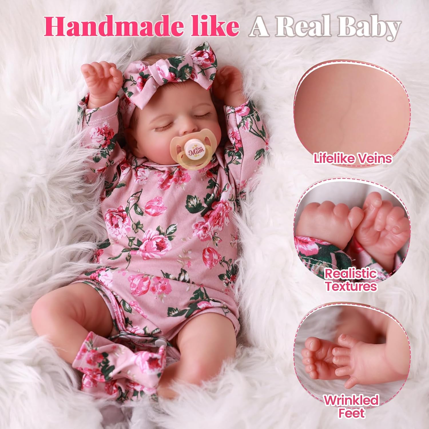 20-Inch Soft Cloth Body: Our lifelike baby dolls boast an impressively soft cloth body that is delightfully satisfying to the gentlest touch. Each detail is lovingly crafted to perfection, radiating handmade charm. She is 20 inches from head to toe.