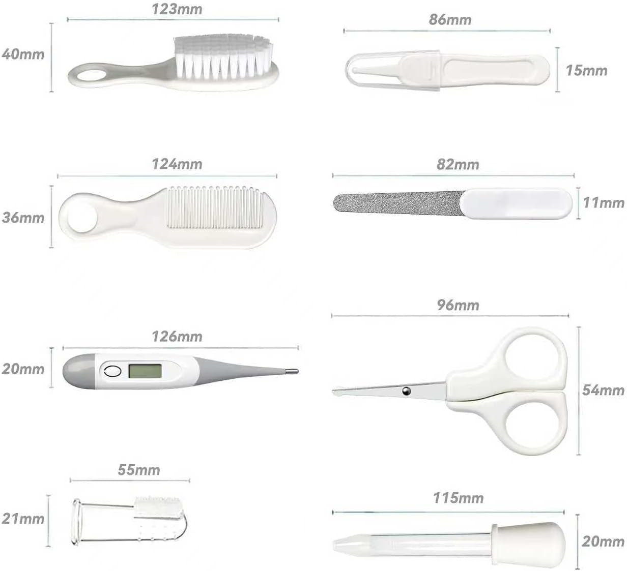 Safe Baby Grooming Kit: In order to make every baby always get good grooming and health, we designed this grooming kit. The baby care kit are made of high quality stainless steel and BPA-free plastic, and it is safe to use to reassure parents.