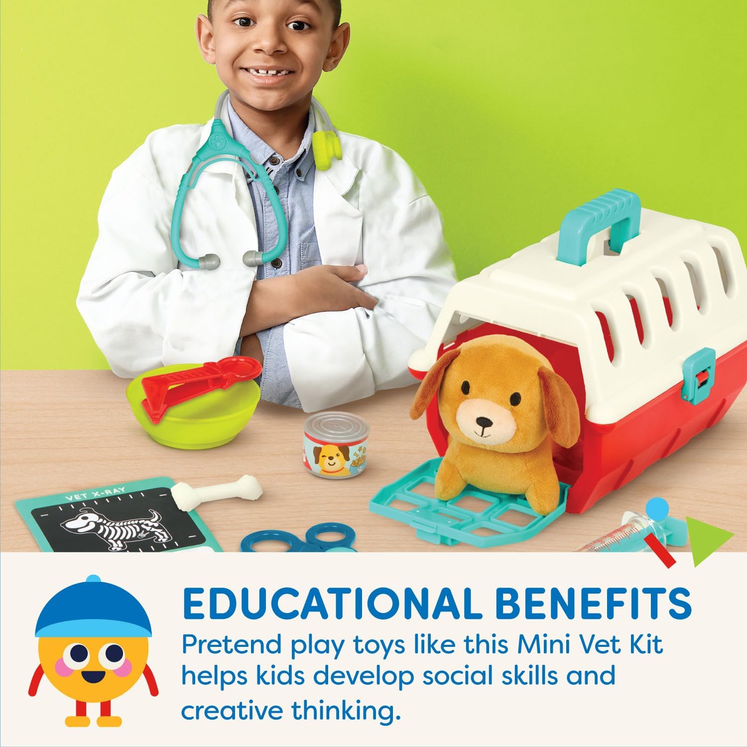 Step into a vet’s shoes with the Puppy Care Vet Kit from Battat Toys! This kids’ veterinary playset comes with a cuddly plush dog and a range of realistic play vet tools for tons of pretend play fun. Is your plush pup feeling under the weather? No worries, after a visit at your pretend vet clinic, they’ll feel better in no time. Make sure to refer to the checklist when your pretend puppy patient arrives! Then, check their heartbeat using the play stethoscope and put a bandage on any boo-boos they have. If they’re feeling hungry, there’s also a yummy can of pretend dog food. When the pretend appointment is over, everything packs neatly inside the pet carrier! Made of worry-free and durable materials, all Battat products meet or exceed EU, U. S. and Canadian safety standards.