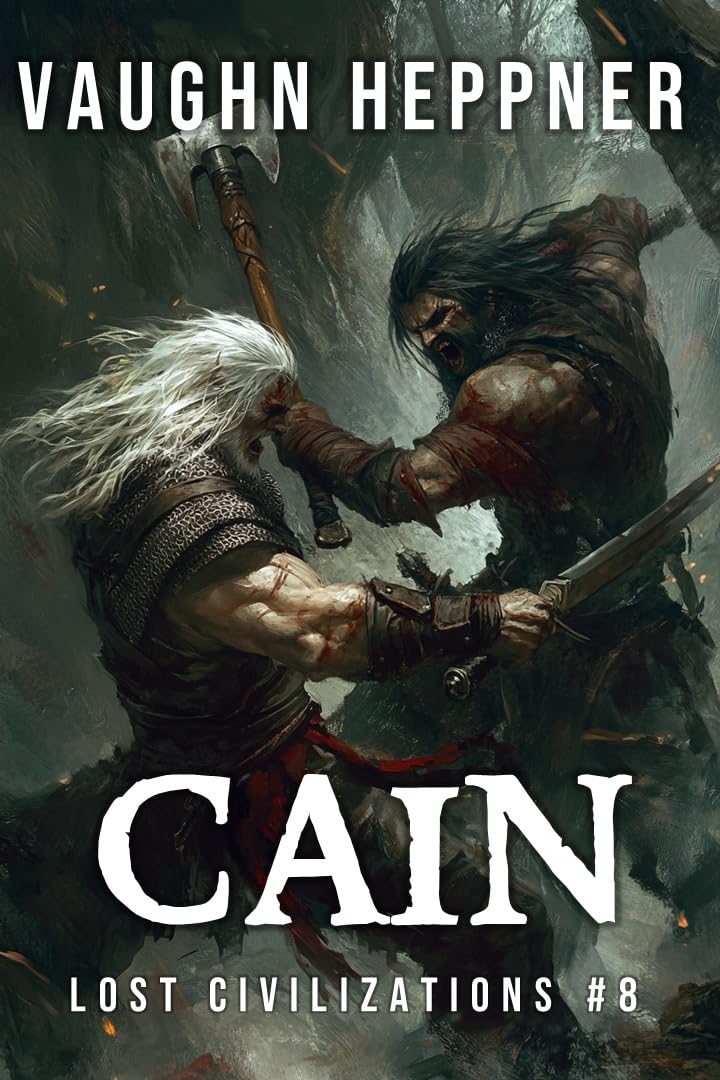 The battle rages in CAIN, the eighth book of the Lost Civilization Series, a tale of sword versus sorcery, men against Nephilim, before the oceans overran the Pre-Cataclysmic World.