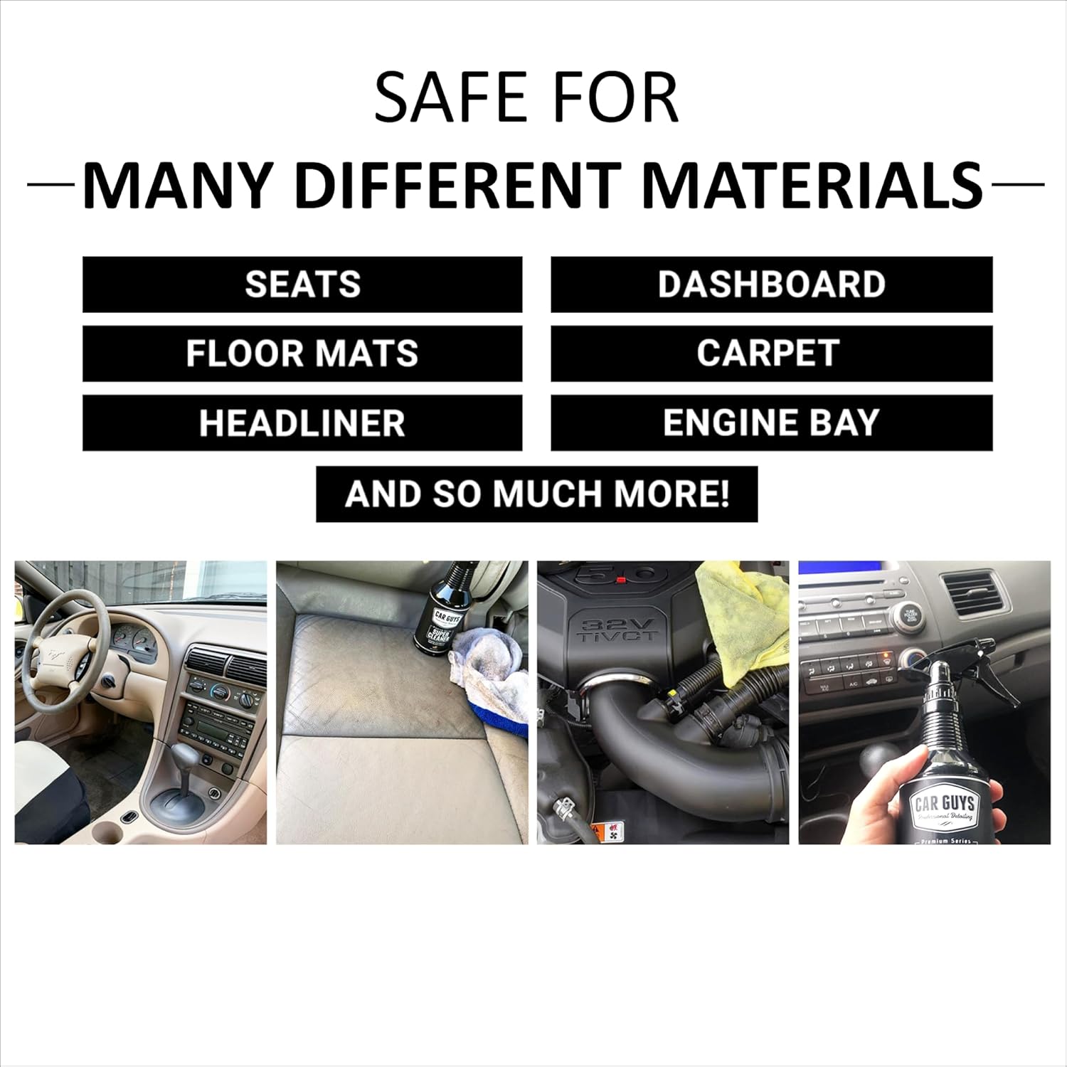 REPLACE YOUR CABINET OF CHEMICALS! – Do you get confused by all the different types of cleaning supplies that are available? It gets frustrating fast! Just cleaning your vehicle requires some special deep stain remover, a chemical solvent to get rid of bug and tar, a separate floor mat and inner dash cleaner.. and the list goes on and on! Keep it simple with one multipurpose product, CAR GYUYS Super Cleaner… the KING OF ALL CLEANERS !
