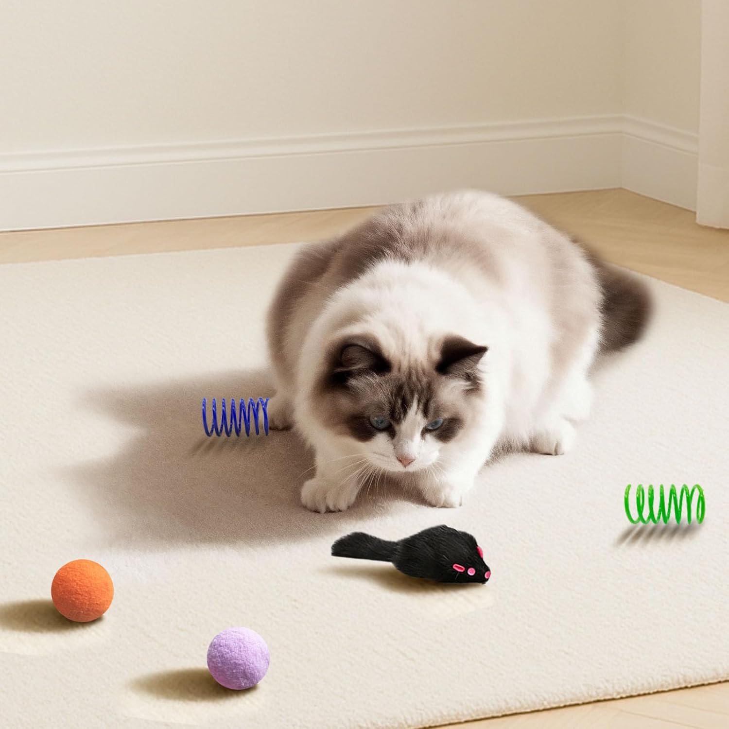 [Play with Your Cat]: Play interactive games with the cat to enhance the intimacy with it. Brightly colored cat ball toy and cat toy mouse can attract cats, inspire a fun atmosphere, enhance the interaction between you and cats, get close to cats by teasing them and playing together. Even when you’re not around them, these toys will keep them energized and enthusiastic! 🐈