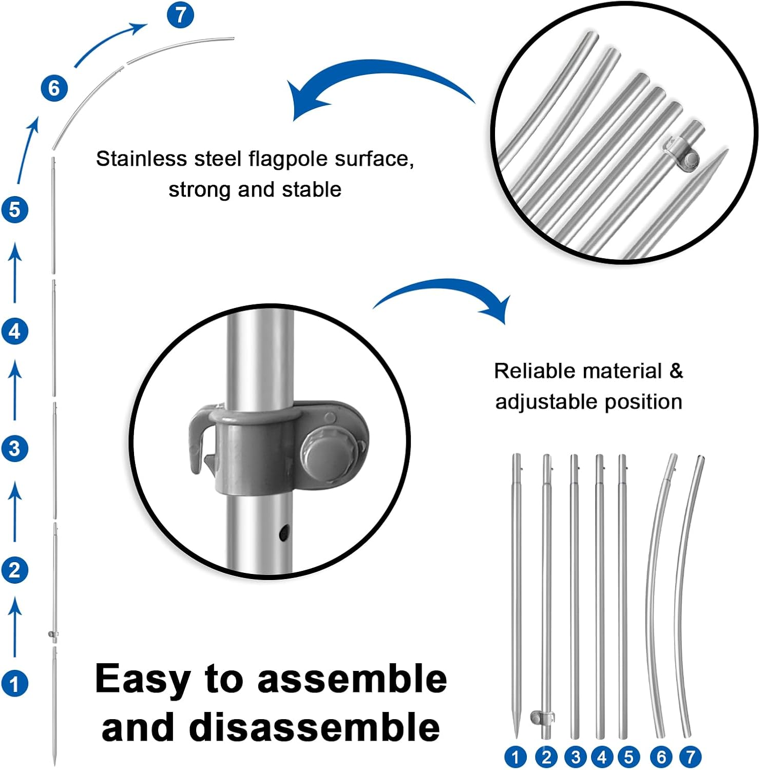 High Stability: Made of stainless steel flag pole, wind resistant, high performance, high load-bearing pull, guaranteeing pole stability