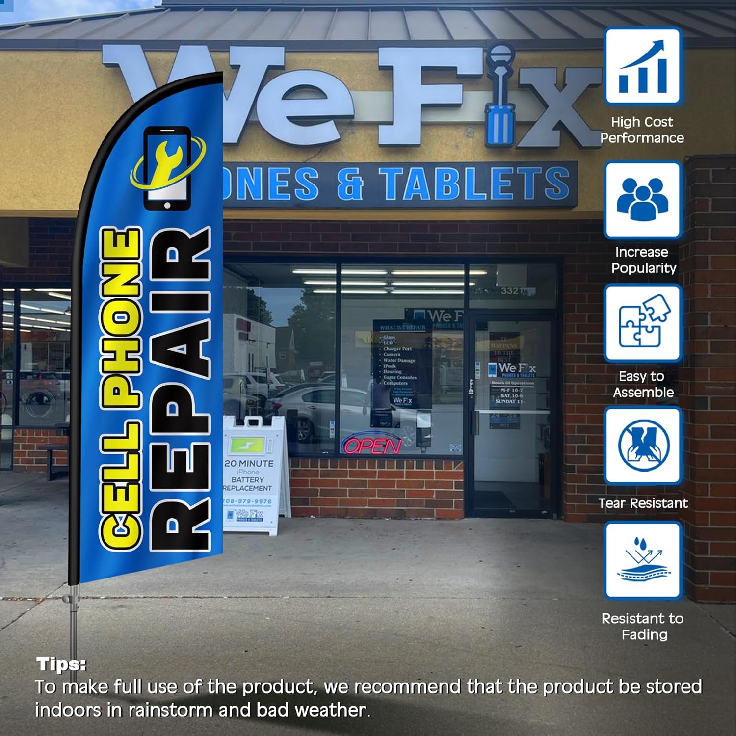 Wide Application: Cell phone repair signs can be widely used in various outdoor activities. such as open days, advertising banners, indicators, opening hours etc