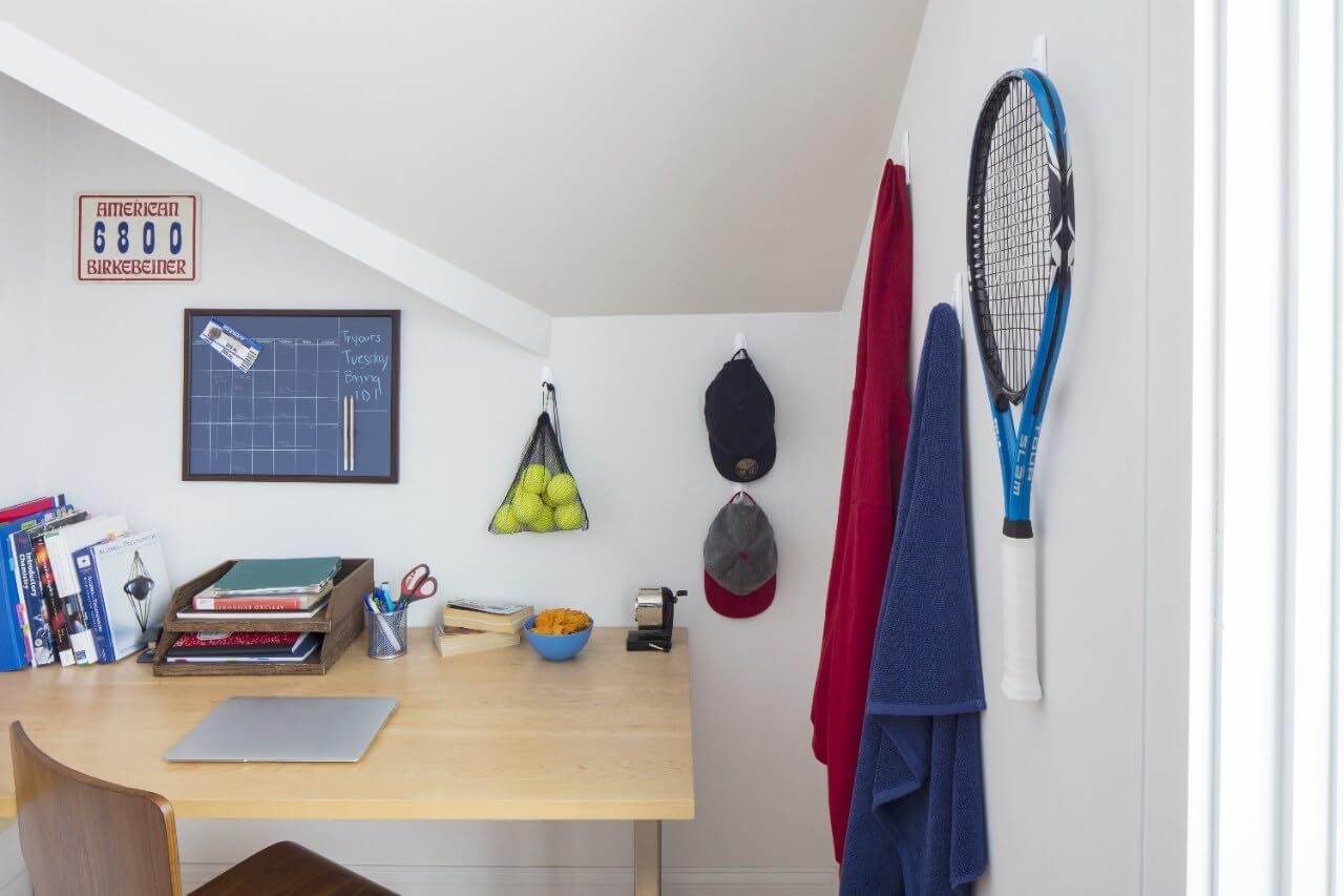DAMAGE FREE HANGING: Wall hooks work without leaving holes, marks or sticky residue so you can move and rehang clipboards, brushes, dog leashes, kitchen utensils, home decor and accessories or use as a coat hook to hang your favorite jackets and coats