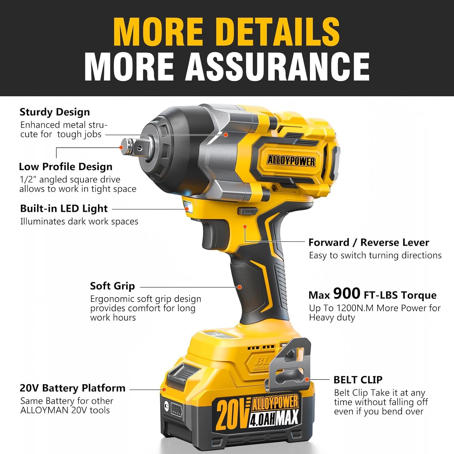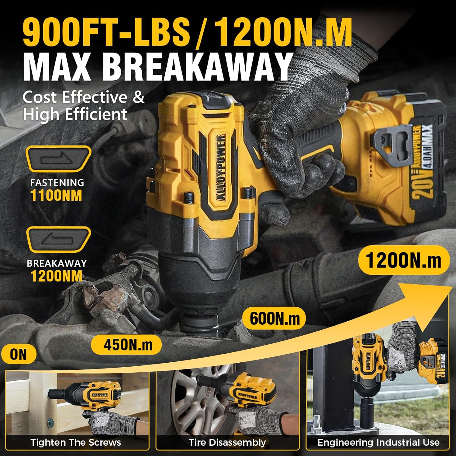 【Brushless Motor — Efficient & Quieter, and Spark-Free】 Brushless motor delivers 900 ft-lbs (1200 N·m) of torque — runs up to 50% longer, quieter and spark-free. Work faster with reduced fatigue: up to 90% more efficient than manual tools.