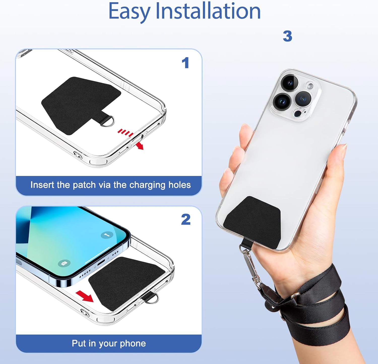 EASY INSTALLATION: Ultra-thin phone anchor fits between your phone and phone case and connect to the lanyard through the charging port of your phone case