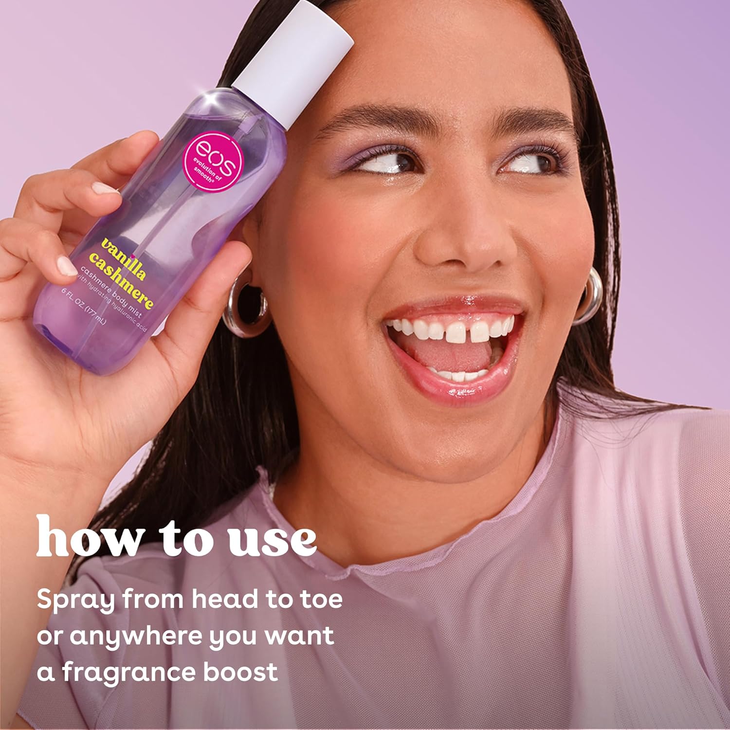 eos Cashmere Body Mist, Vanilla Cashmere, Soft Musk, Cozy Caramel, Hair Mist, Body Spray for Women Moisturizing, Hyaluronic Acid, Vanilla Body Spray, Vegan, Cruelty-free, 6 fl oz
