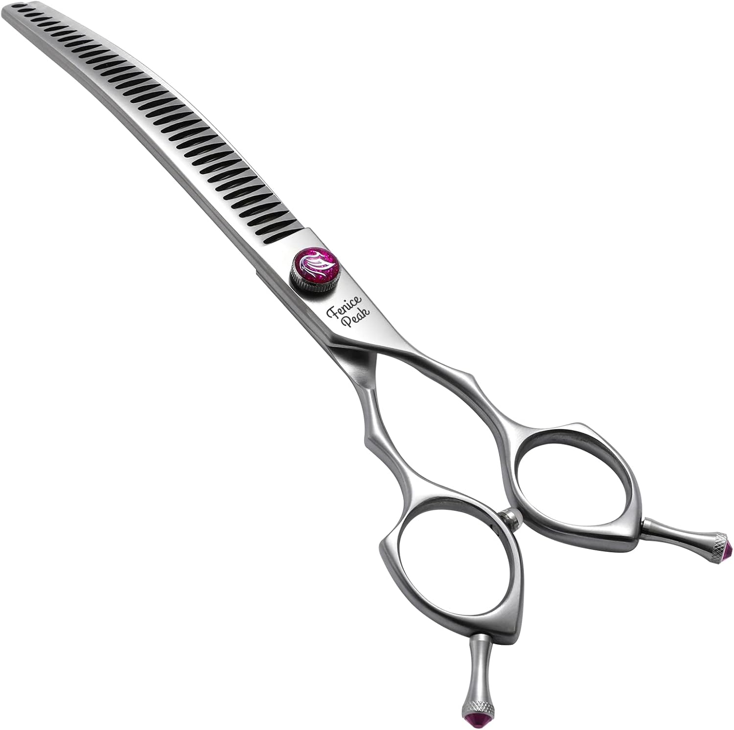 These professional curved chunker scissors are sharpened by handicraftsmen. Experts check the scissors’ sharpening one by one. Consequently, the blades of these dog grooming scissors are extremely sharp, and the cut is very fine, precise, and fast, regardless of the hair’s quantity or type it is being used on.