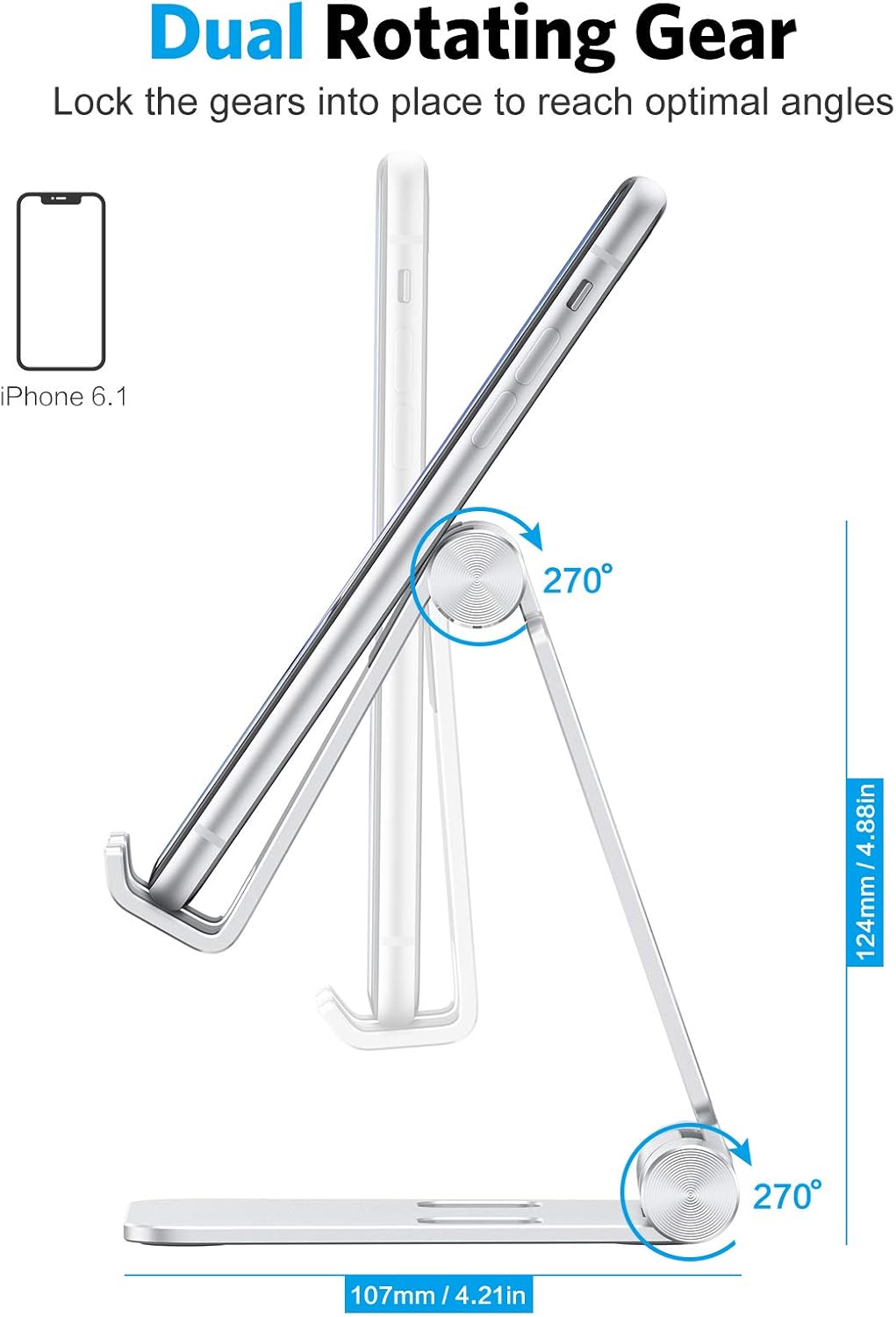 ADJUSTABLE ANGLE: The cell phone stand can be easily adjusted up to 270 degrees to provide the most comfortable viewing angle while you are watching videos, playing games, making phone calls, viewing recipes or talking on Facetime, etc