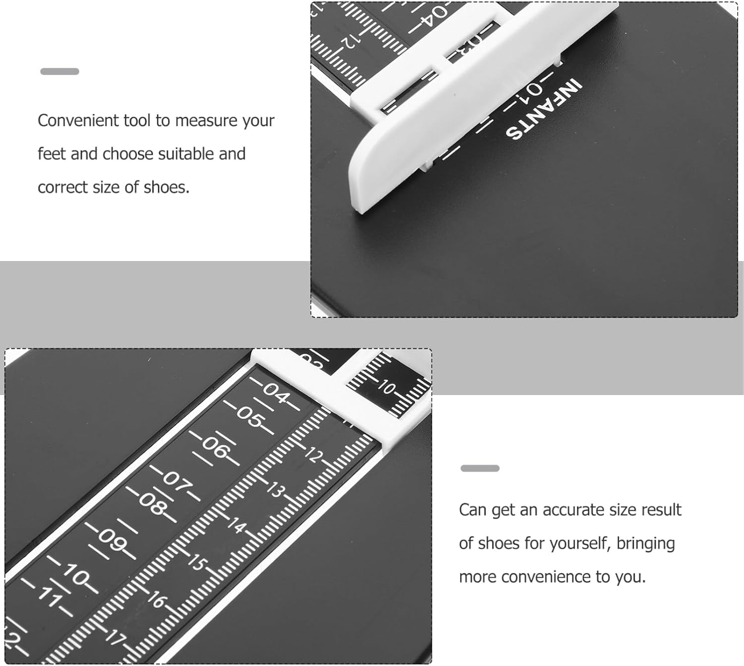 Made from durable and lightweight materials, this foot size measuring device is designed for long-lasting use. Its compact structure includes a convenient hanging hole, allowing for easy storage and accessibility at home. You can rely on the Upgrade With foot sizer measuring device for regular use or the occasional shoe shopping trip. It delivers dependable accuracy, making it simple to find the right shoe size with ease every time.