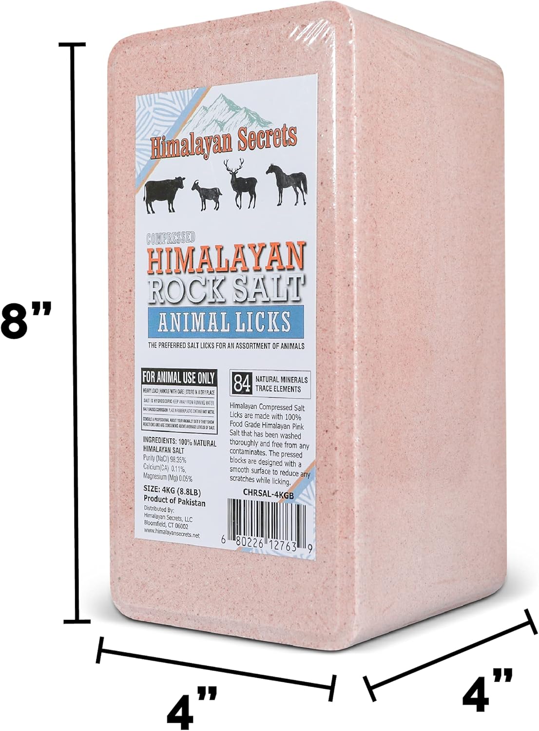 Support your animals’ health naturally with the Himalayan Secrets Compressed Pink Himalayan Salt Lick Brick. Made from 100% pure Himalayan rock salt, this block delivers 84 essential minerals and trace elements that help replenish electrolytes, strengthen bones, and improve overall wellness. Unlike traditional salt blocks, our licks are compressed under extreme pressure to create a dense, long-lasting brick that resists crumbling and stands up to outdoor conditions. Designed with smooth edges, they provide a safe and gentle licking surface, reducing the risk of tongue irritation for your animals. Whether for livestock or wildlife, this mineral-rich block is a trusted supplement for horses, cows, goats, sheep, deer, and more. Farmers and ranchers rely on Himalayan Secrets to encourage hydration, improve coat and hoof health, and promote balanced mineral intake. Every block is sustainably and ethically sourced from the Himalayan foothills in Pakistan, ensuring you provide your animals with the highest quality, all-natural salt supplement. Durable, safe, and packed with nutrition, Himalayan Secrets keeps your animals healthy, happy, and thriving.