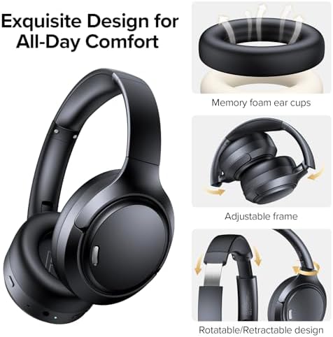 About this item Hybrid Active Noise Cancelling & 40mm Powerful Sound: Powered by advanced hybrid active noise cancelling with dual-feed technology, TAGRY A18 over ear headphones reduce noise by up to 45dB, effectively minimizing distractions like traffic, engine noise, and background chatter. Equipped with large 40mm dynamic drivers, A18 Noise Cancelling Wireless Headphones deliver bold bass, clear mids, and crisp highs for a rich, immersive listening experience anywhere Crystal-Clear Calls with Advanced 6-Mic ENC: Featuring a six-microphone array with smart Environmental Noise Cancellation (ENC), TAGRY A18 bluetooth headphones accurately capture your voice while minimizing background noise such as wind, traffic, and crowd sounds. Enjoy clear, stable conversations for work calls, virtual meetings, online classes, and everyday chats—even in noisy environments 120H Playtime & Wired Mode Backup: Powered by a high-capacity 570mAh battery, A18 headphones deliver up to 120 hours of listening time on a single full charge, eliminating the need for frequent recharging. Whether you’re working long hours, traveling across multiple days, or enjoying daily entertainment, one charge keeps you powered for days. When the battery runs low, simply switch to wired mode using the included 3.5mm AUX cable and continue listening without interruption Bluetooth 6.0 with Fast, Stable Pairing: With advanced Bluetooth 6.0, the A18 ANC bluetooth headphones wireless offer fast pairing, ultra-low latency, and a reliable connection with smartphones, tablets, and computers. Experience smooth audio streaming and responsive performance for gaming, video watching, and daily use All-Day Comfort with Foldable Over-Ear Design: Designed with soft, cushioned over-ear ear cups and an adjustable, foldable headband, the A18 ENC headphones provide a secure, pressure-free fit for all-day comfort. The collapsible design makes them easy to store and carry for commuting, travel, or everyday use. Plus, Transparency Mode lets you stay aware of your surroundings without removing the headphones, keeping you safe and connected while enjoying your audio anywhere Built for Work, Travel, and Everyday Life: Designed for modern, on-the-go lifestyles, the A18 over ear headphones combine premium sound, long battery life, and reliable wireless performance in one versatile design. Whether you’re working from home, commuting, traveling, or relaxing, they deliver a seamless listening experience you can rely on every day