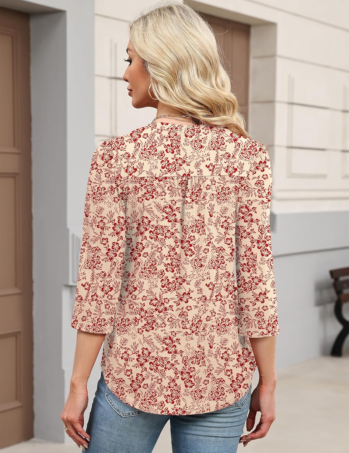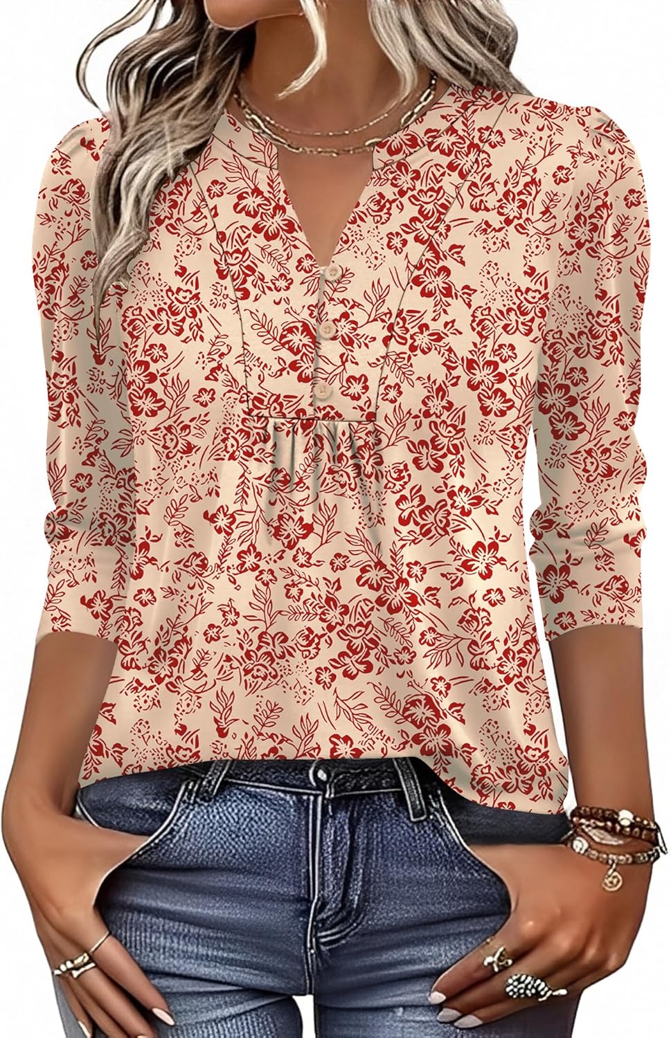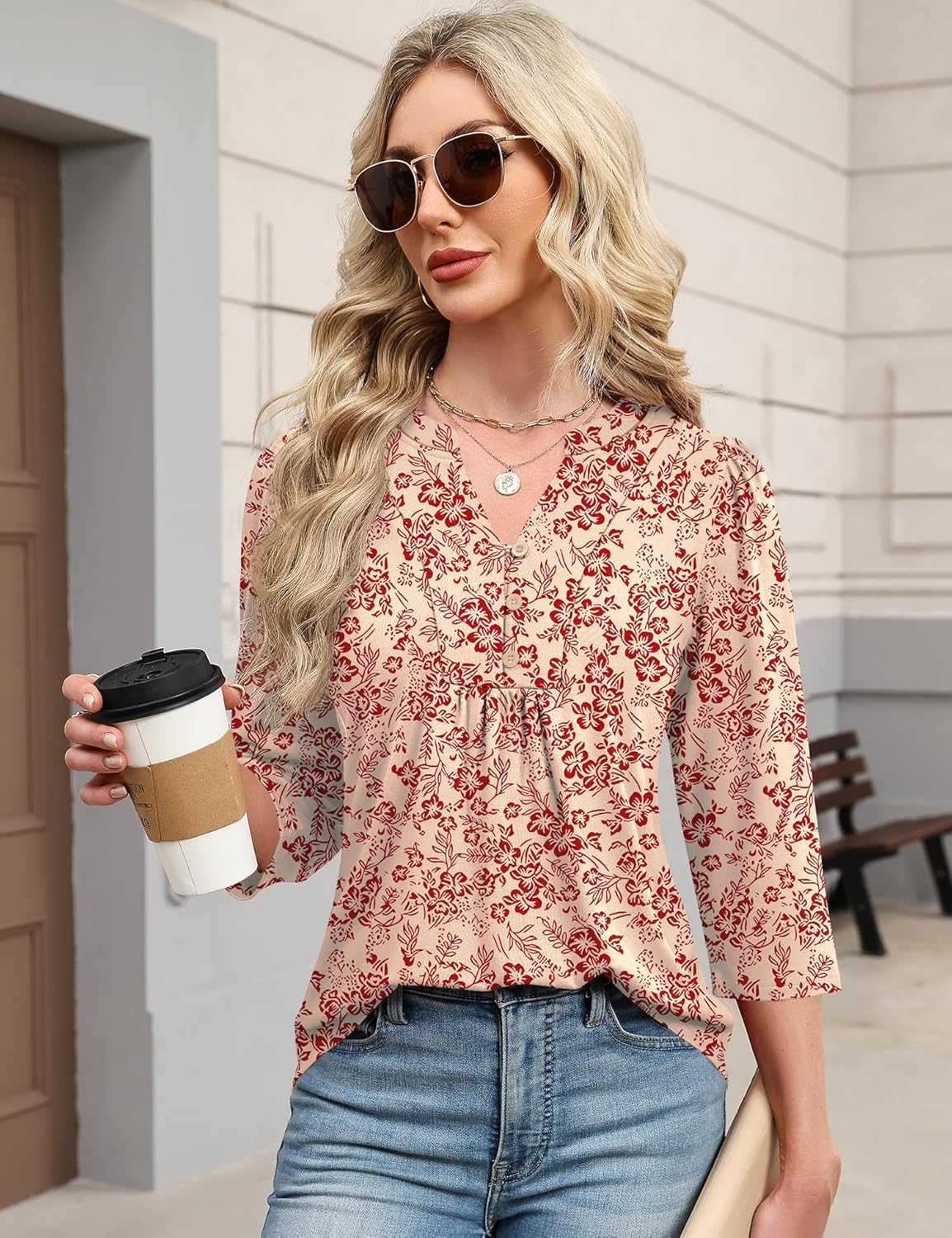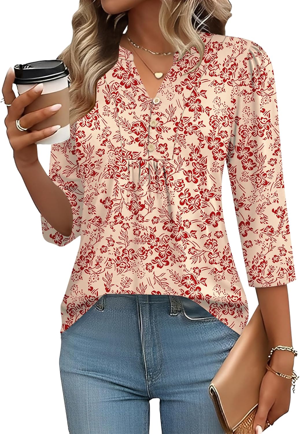 The video showcases the product in use.The video guides you through product setup.The video compares multiple products.The video shows the product being unpacked. 3/4 sleeve tops Merchant Video