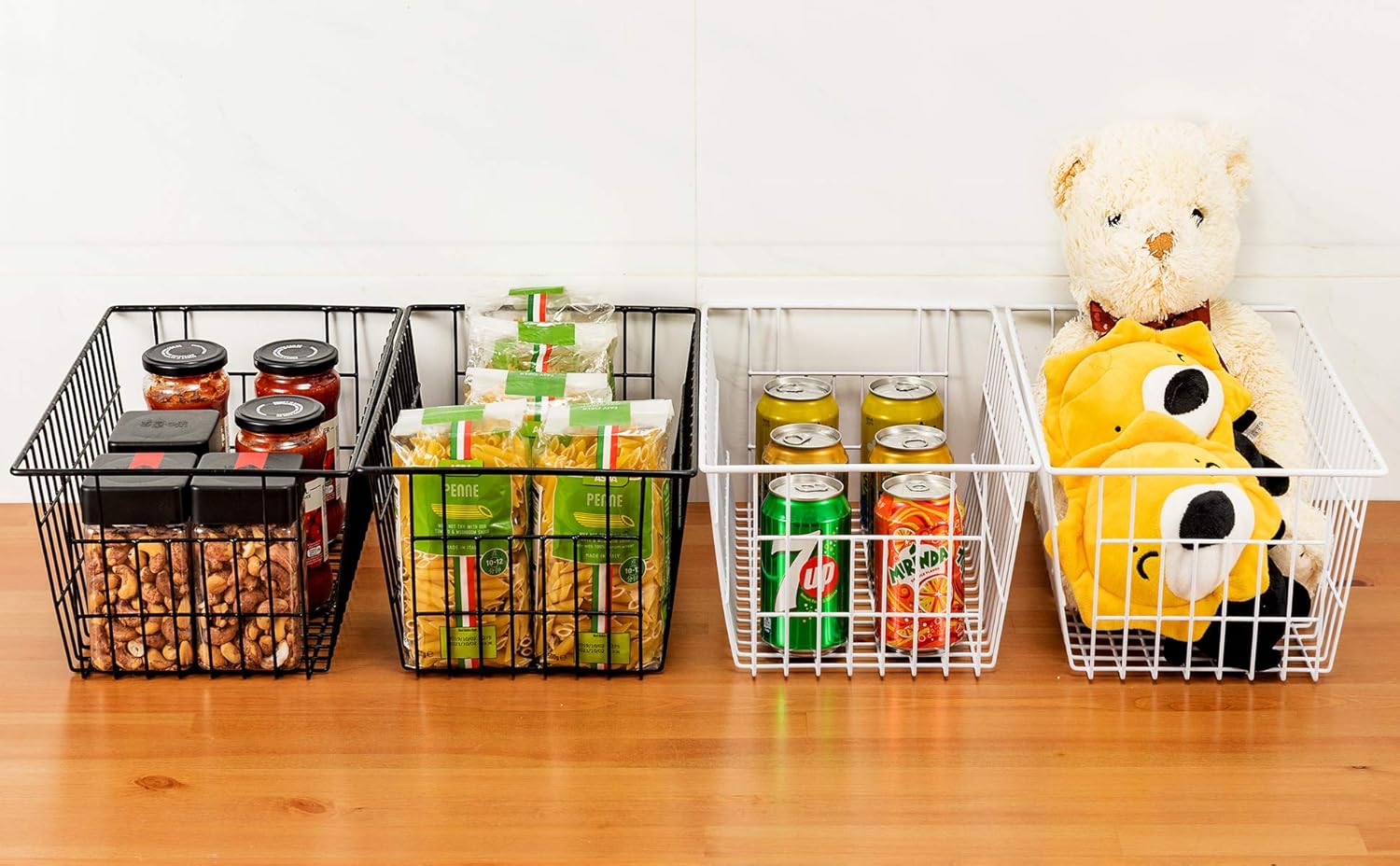 PORTABLE: The integrated, built-in handles make it convenient to pull these off the shelf, out of cabinets or wherever you store them; They are easy to grab and transport to kitchen countertops, islands or tables; Use multiple bins together to create a customized organization system that works for you; Keep items organized and easy to find.