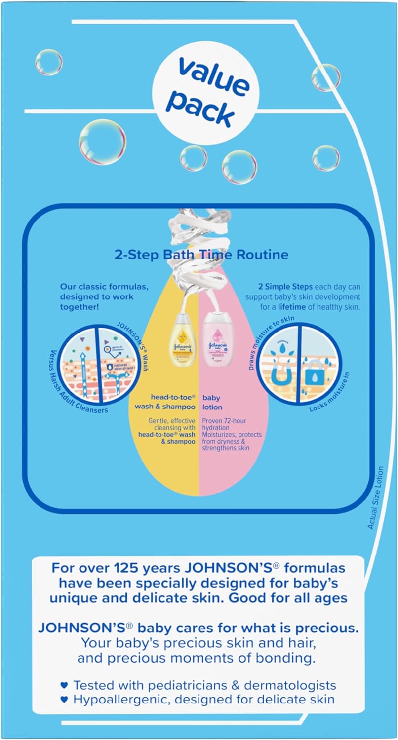 CLEANSES DELICATE SKIN: 13.6-fluid ounces of Johnson’s Head-to-Toe Wash & Shampoo gently cleanses skin & hair without drying. The No More Tears formula is as gentle to eyes as pure water, making bath time safe and soothing for newborns and infants