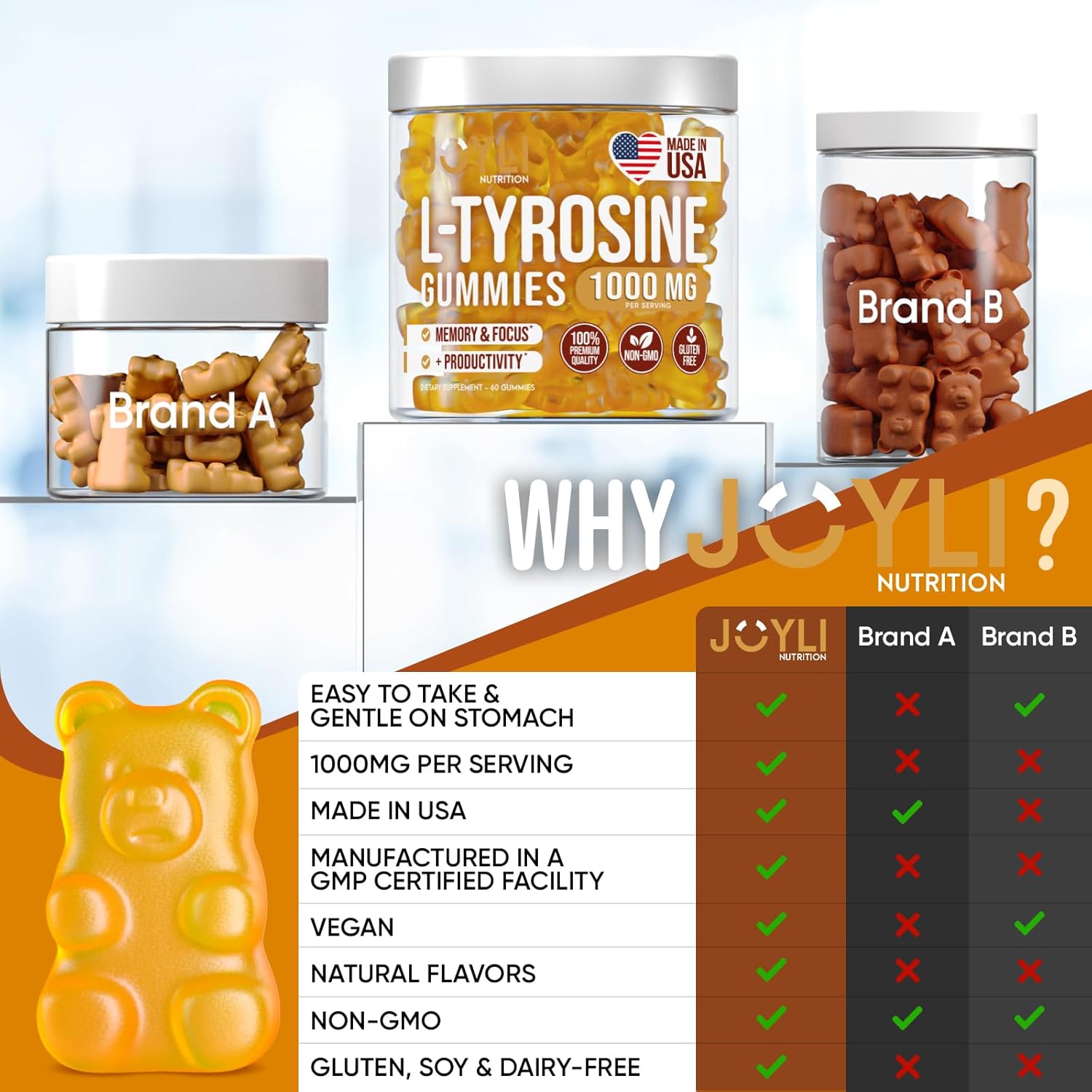 Essential Nutrient – Besides such impressive benefits as supporting focus and memory, Joyli L-Tyrosine supplement helps maintain better energy production and sleep quality. Bring positive energy with absolute wellness into your life!