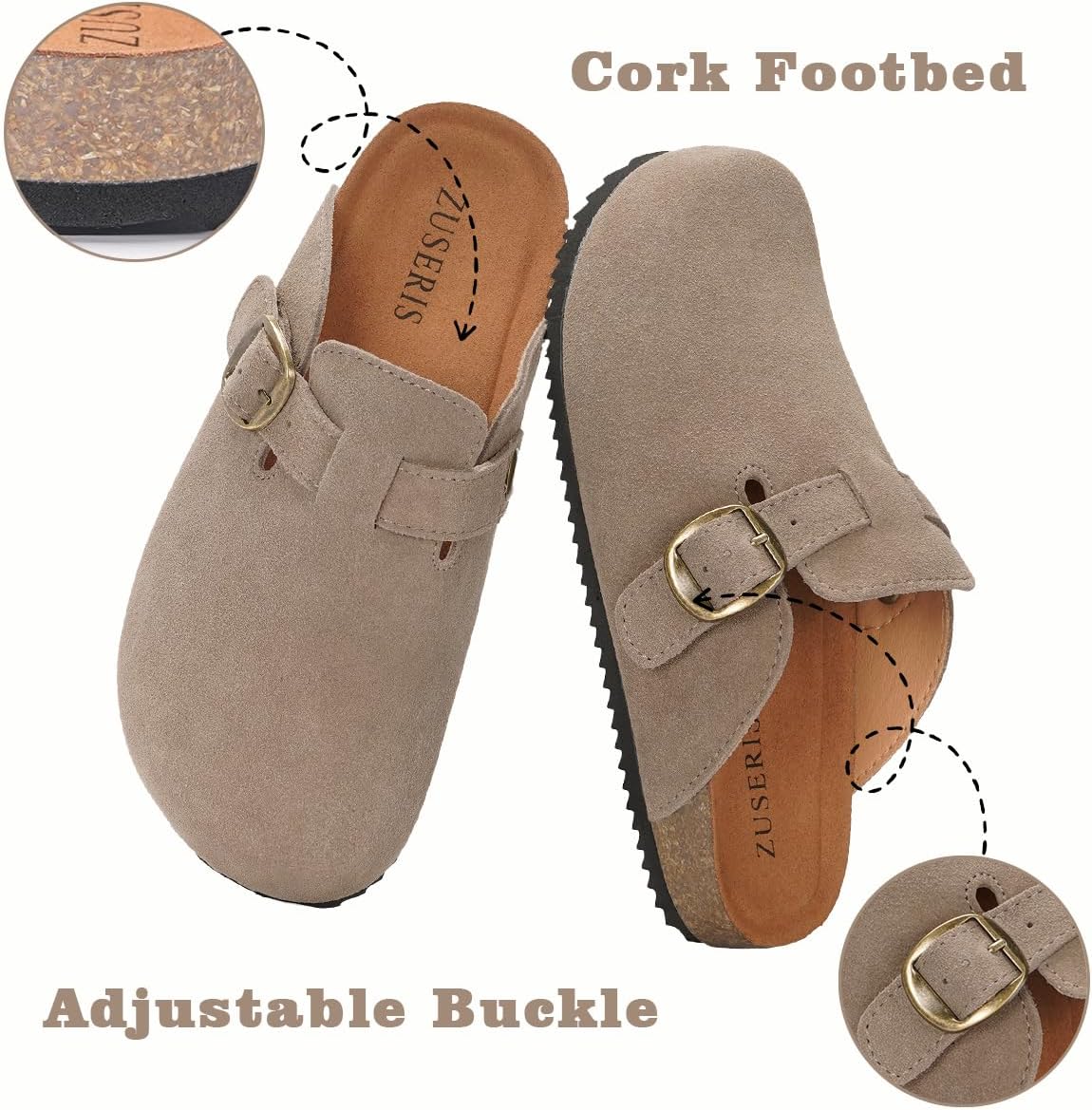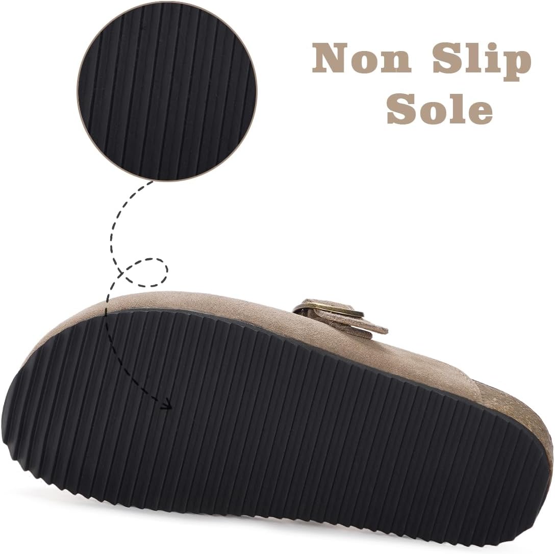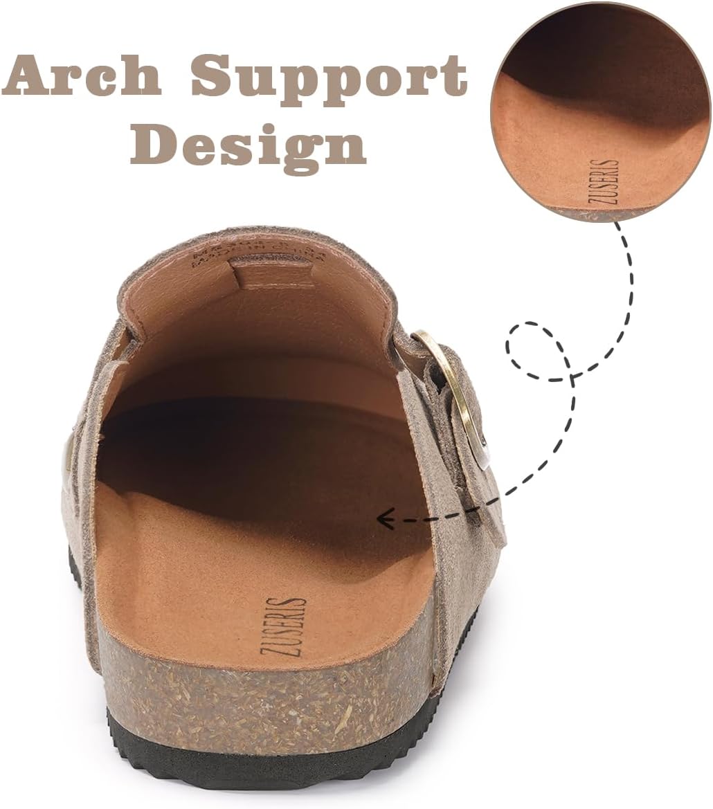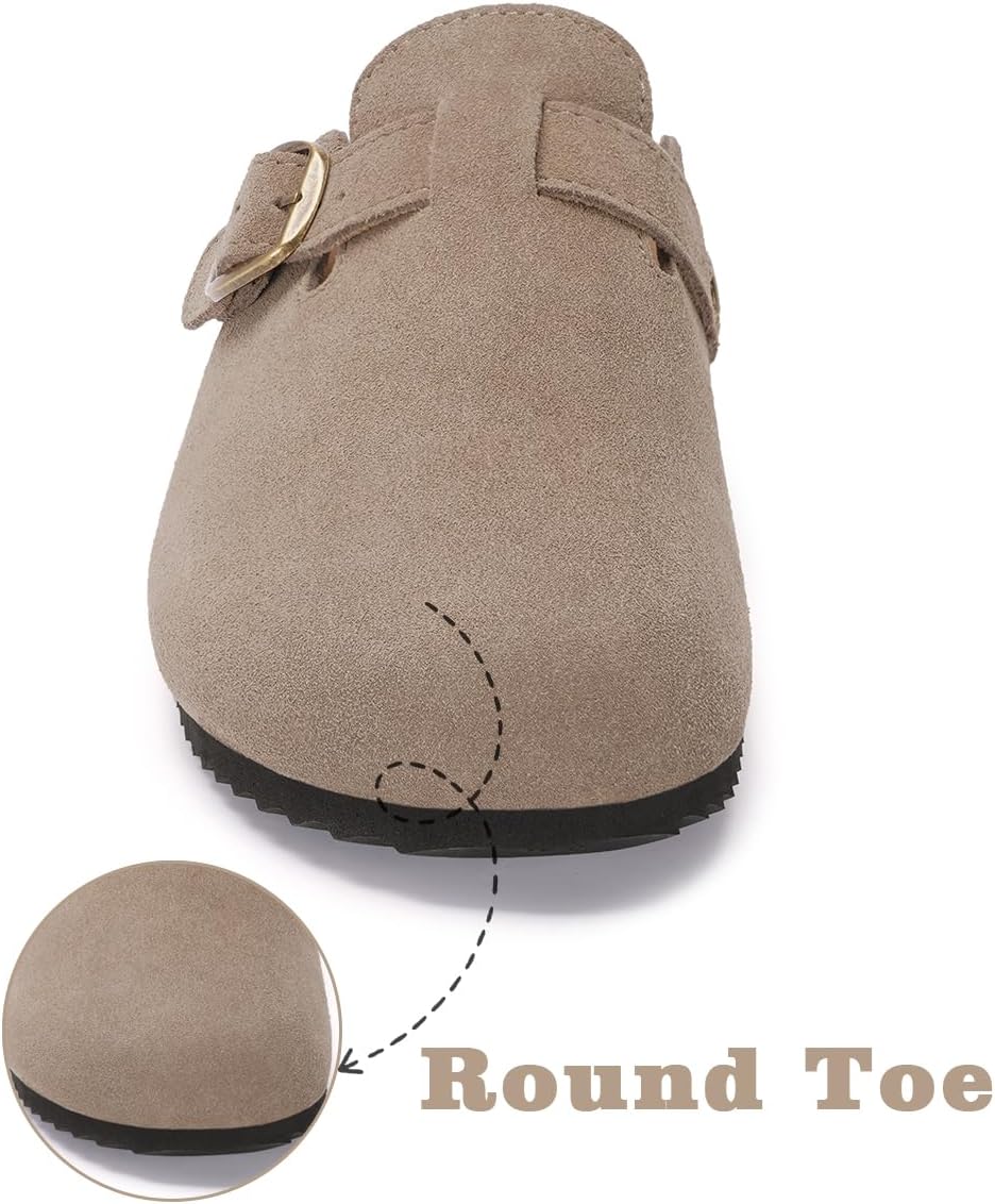 Kids Suede Clogs Boys Girls Cork Footbed Potato Shoes Classic Slip On Leather Mules Children Indoor Outdoor Sandals with Adjustable Buckle