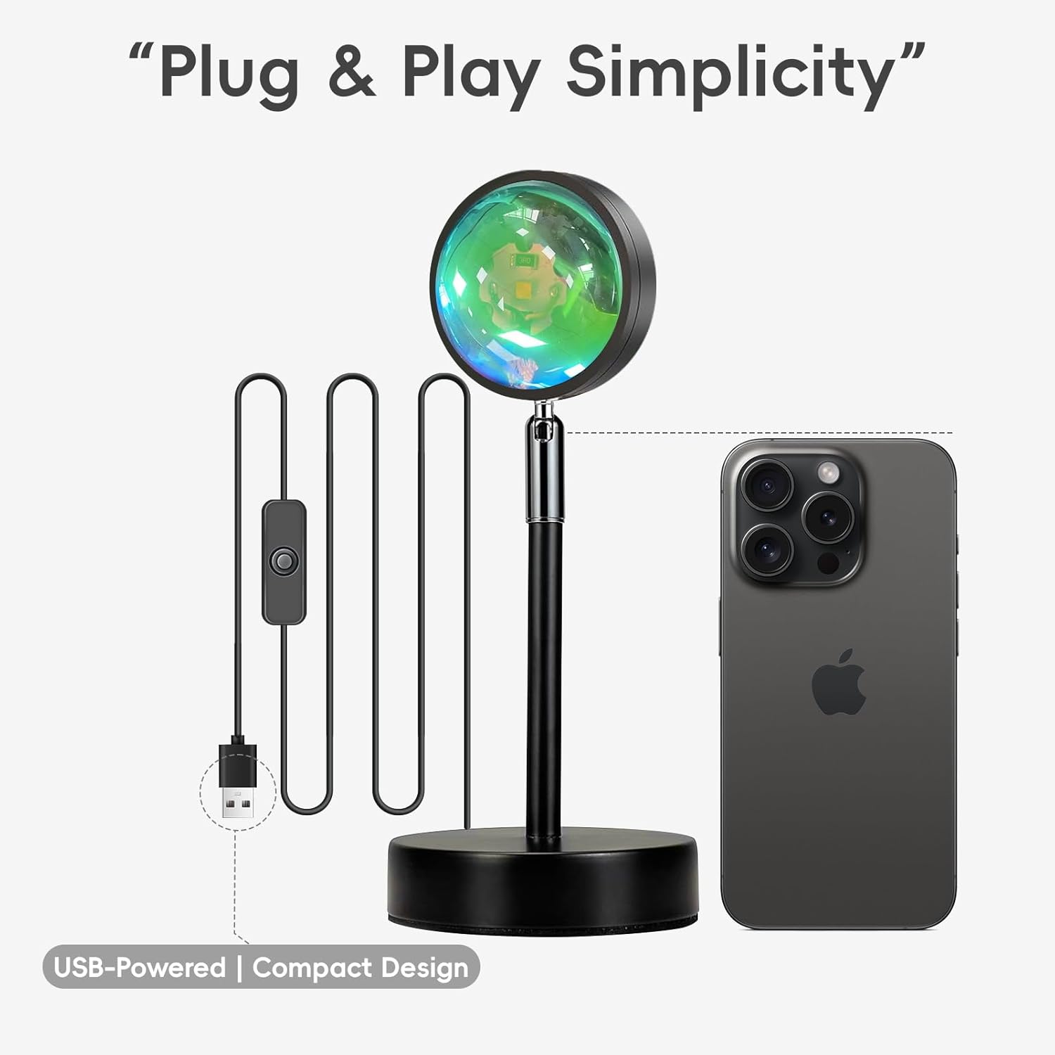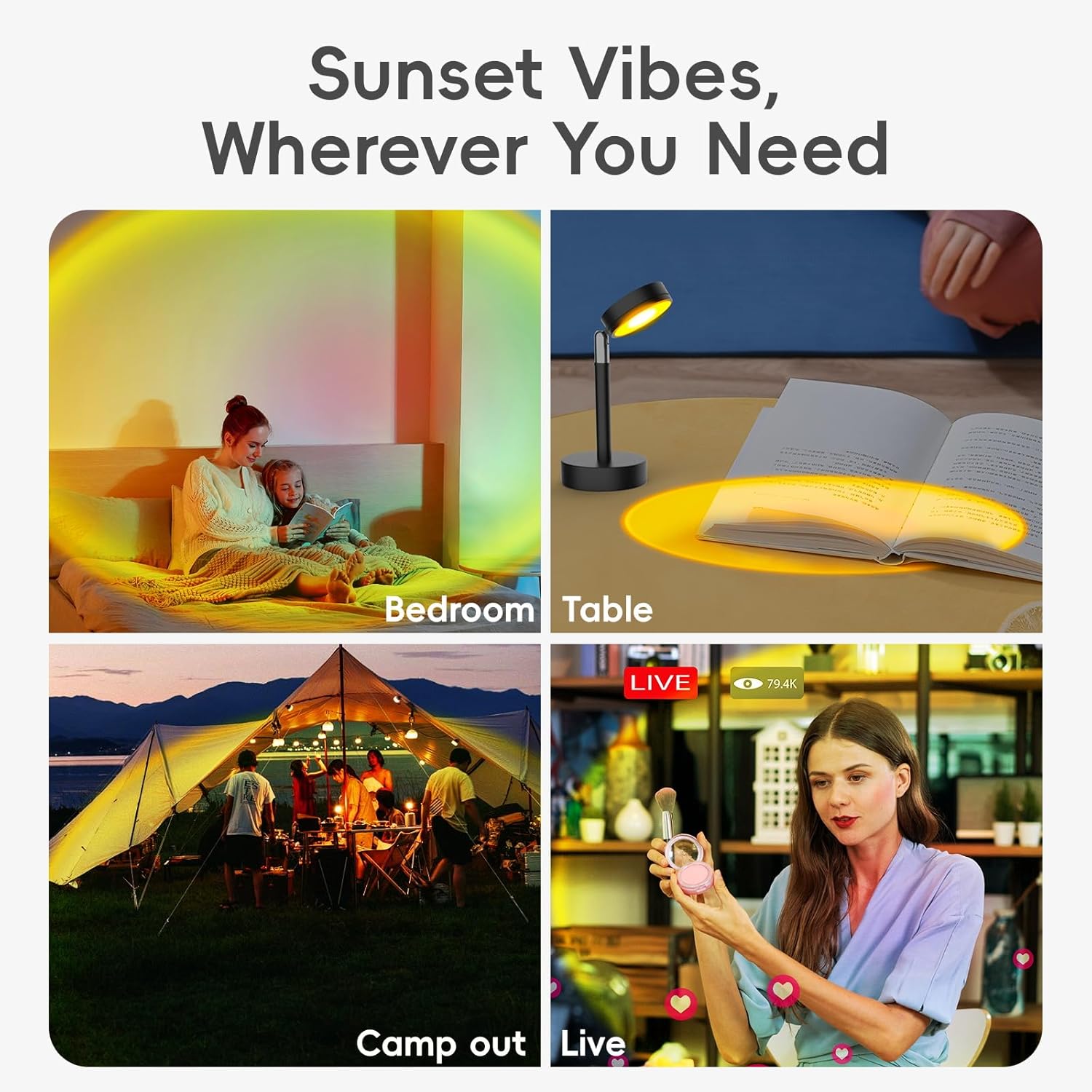 Bring Realistic Sunset Vibes to Any Room:Create authentic sunset lamp magic at home! Our projector mimics natural golden-hour hues (not RGB gimmicks!) to transform bedrooms, offices, or parties into a California beach. Perfect for mood lighting, photo shoots, or unwinding after a long day. No more waiting for sunset—your personal sun lamp is just a click away.
