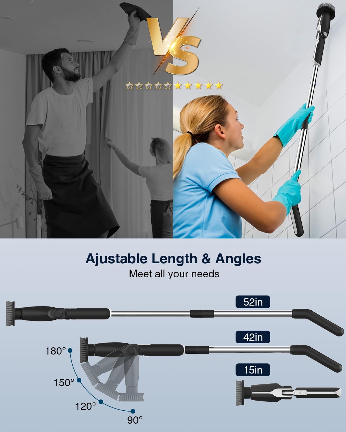 🌀【4 Adjustable Anglese and 2 Spin Modes】Leebein YMG-820 spin scrubber has two 2 adjustable spin speeds(350RPM/450RMP) 4 adjustable angles (90°, 120°,150, 180°), which makes it perfect for tackling tough cleaning tasks in your bathroom, bathtub, stone tile floors, grout, grooves, and toilets.