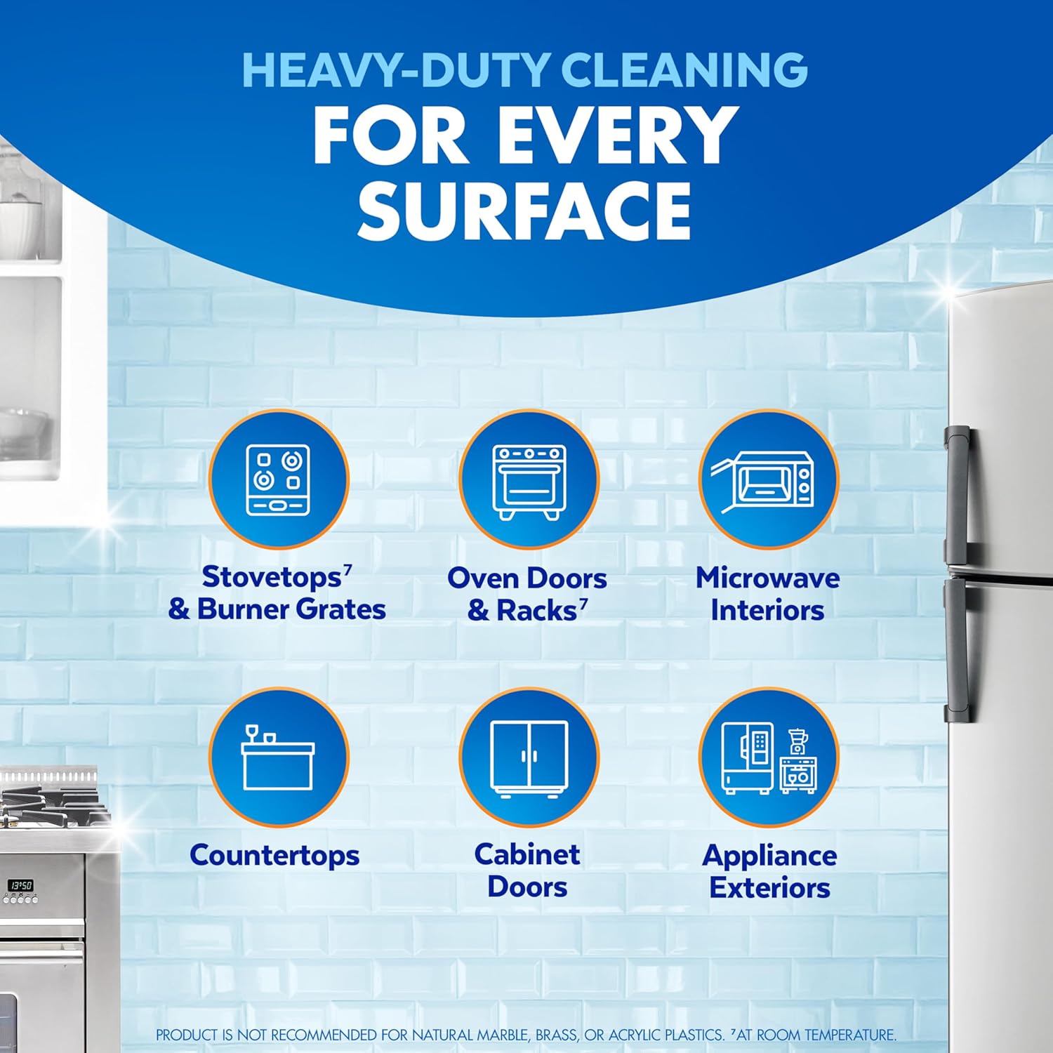 NO HARSH CHEMICAL RESIDUE: Ideal for counter tops, tables, oven exteriors, highchairs, and kitchen exterior appliances* (when used as directed, rinse food contact surfaces with potable water).