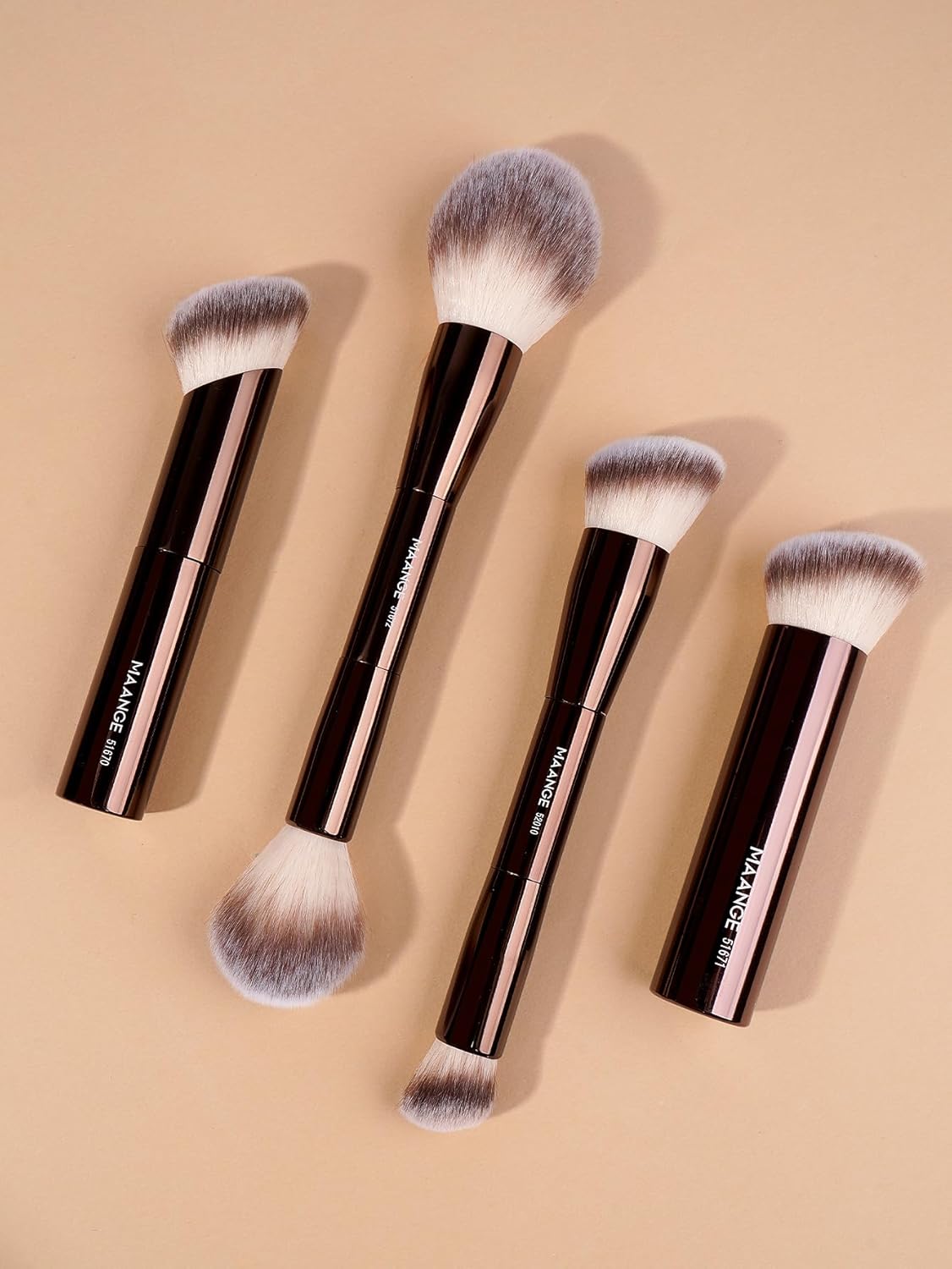 MAANGE 4 PCS Foundation Makeup Brush Set Double-ended Kabuki Contour Brush for Liquid Powder Concealer Cream Cosmetics Blending Blush Face Makeup Tools Kit (Coffee)