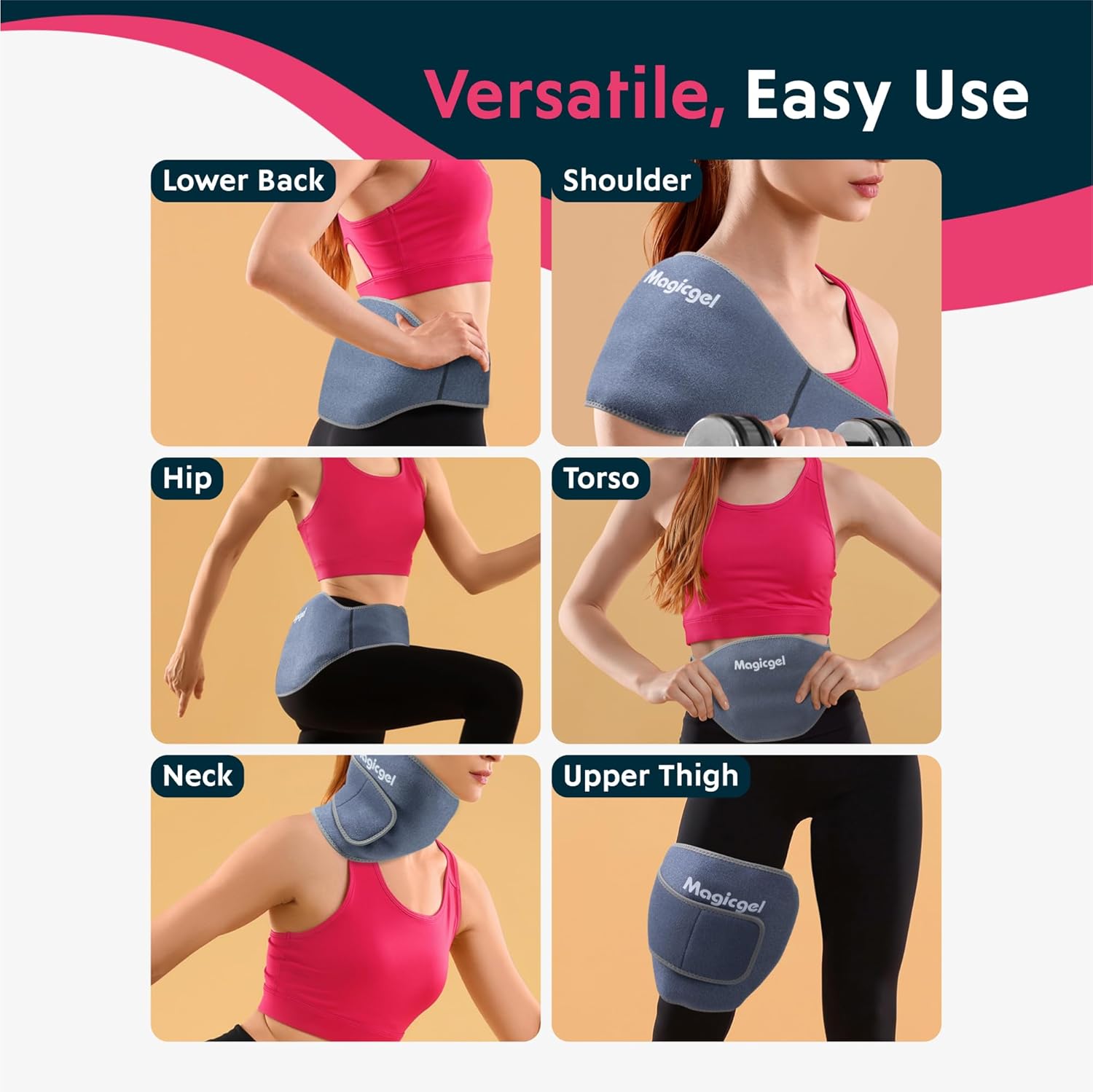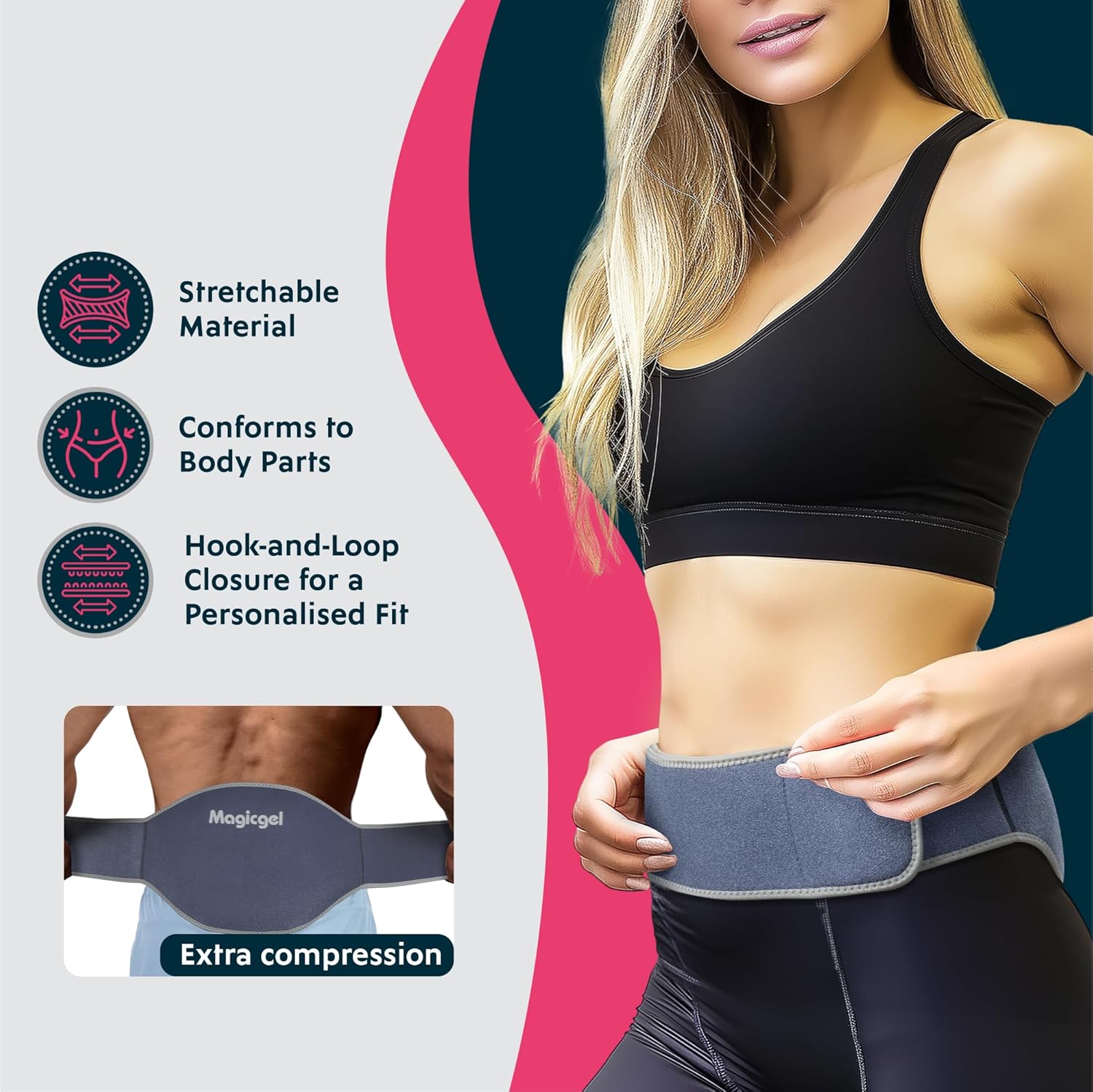 Smart Design: Gel packs contour to your midriff and waist, fastening with a secure strap. Versatile for use on the hip, back, or belly, and made from breathable neoprene for comfort.