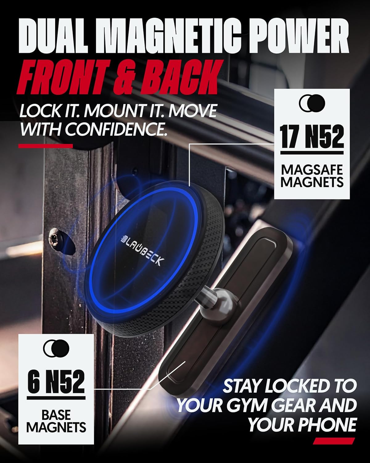 Magnetic Gym Phone Mount for MagSafe Accessories – Dual Magnet Stand for iPhone 17 and Android compatible with MagSafe Phone Stand with Alloy Base – Gym Essentials for Workouts Recording, Home, Garage
