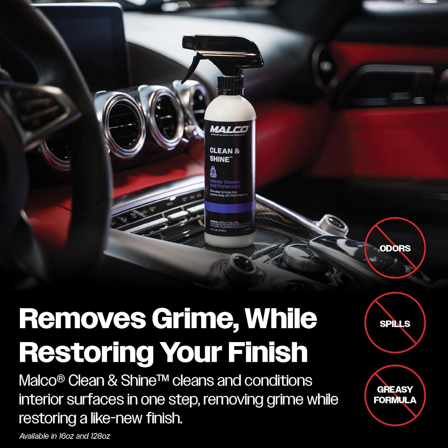 THE “ALL-PURPOSE” CLEANER: Do you have stains, spills or dirt that is keeping your car’s interior from looking its best? Learn what the Pros use! Malco’s Clean & Shine is one of the leading all-purpose cleaners on the market!
