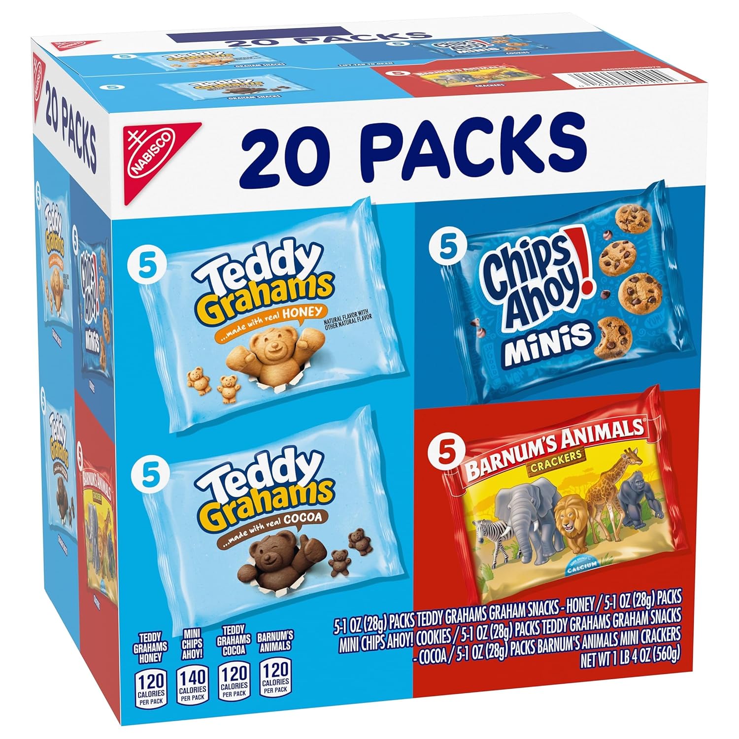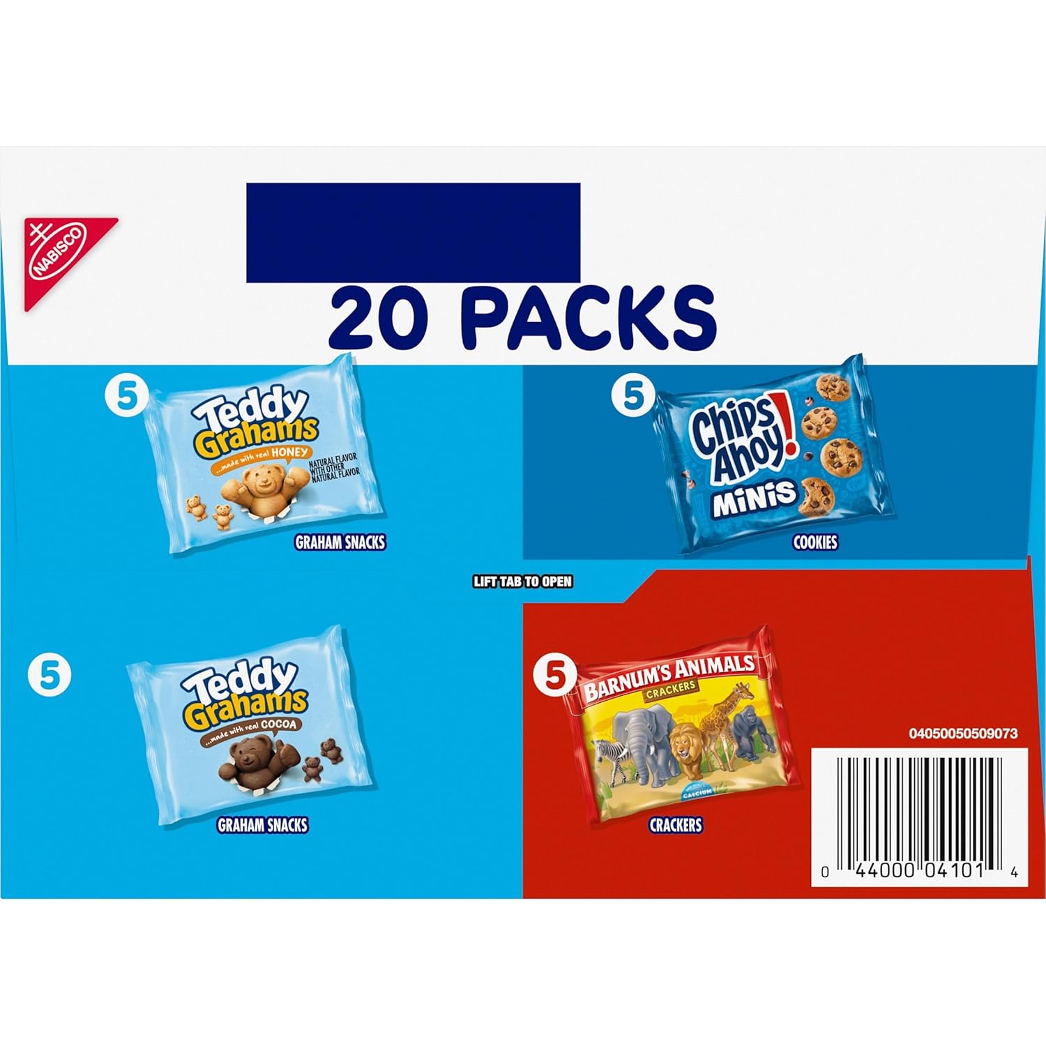 Nabisco Fun Shapes Variety Pack, Barnum’s Animal Crackers, Teddy Grahams and CHIPS AHOY! Cookies, 20 Snack Packs