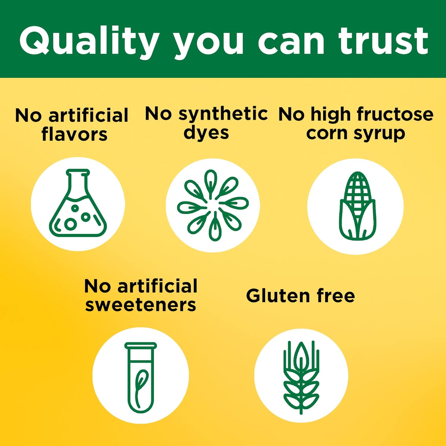This gluten free multivitamin contains no artificial flavors, no synthetic dyes, no high fructose corn syrup, and no artificial sweeteners