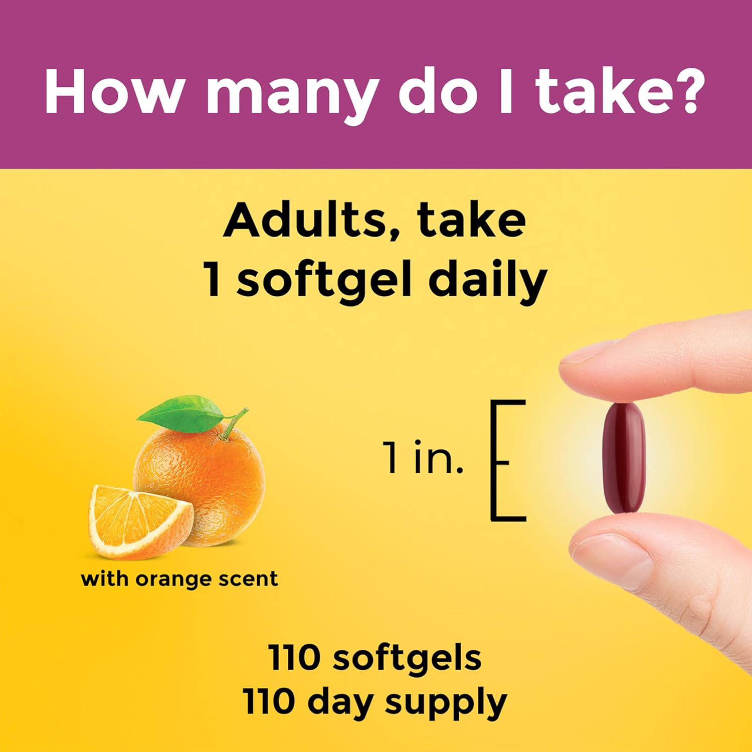 Now with orange scent: Adults take one pre natal multivitamin for women daily with water and a meal for optimal absorption