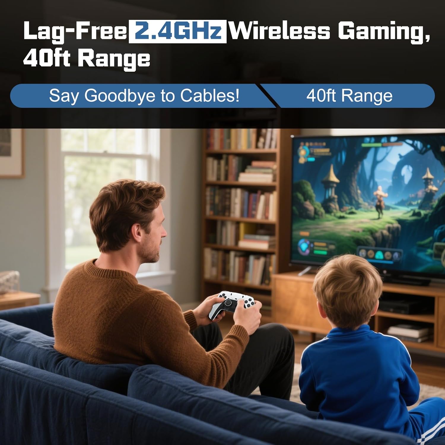 【Dual Upgraded Wireless Controllers – Lag-Free Gaming】Designed for comfort and precision, our 2.4G wireless controllers ensure seamless, interference-free gameplay.