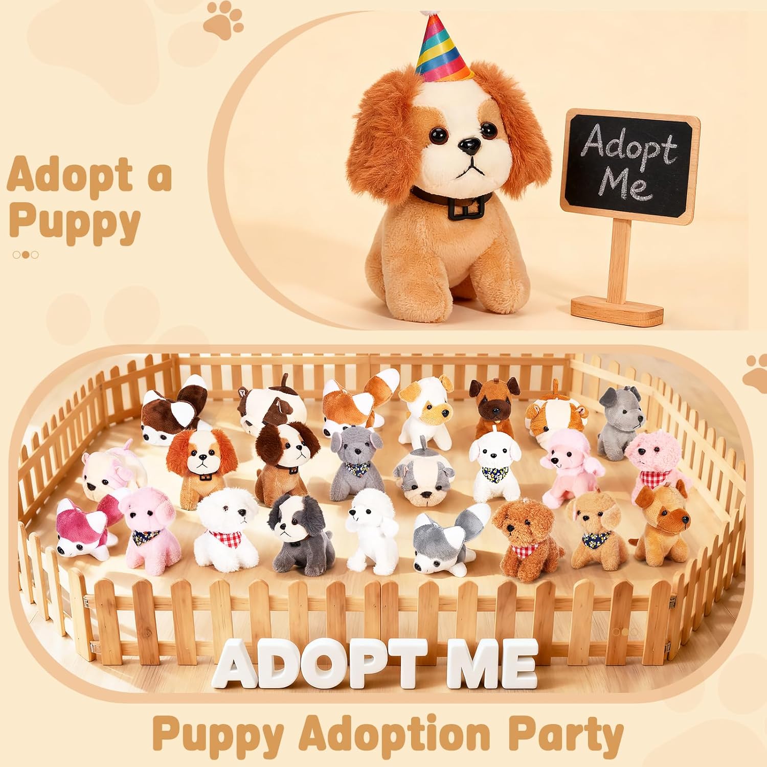 Niceup 24PCS Adopt a Puppy Party Favors Kids Mini Plush Dog Non-candy Easter Basket Stuffers Bulk Stuffed Animals Dog Paw Adoption Pet Doll Toys Birthday Party Goodie Bag Fillers Classroom Reward Gift