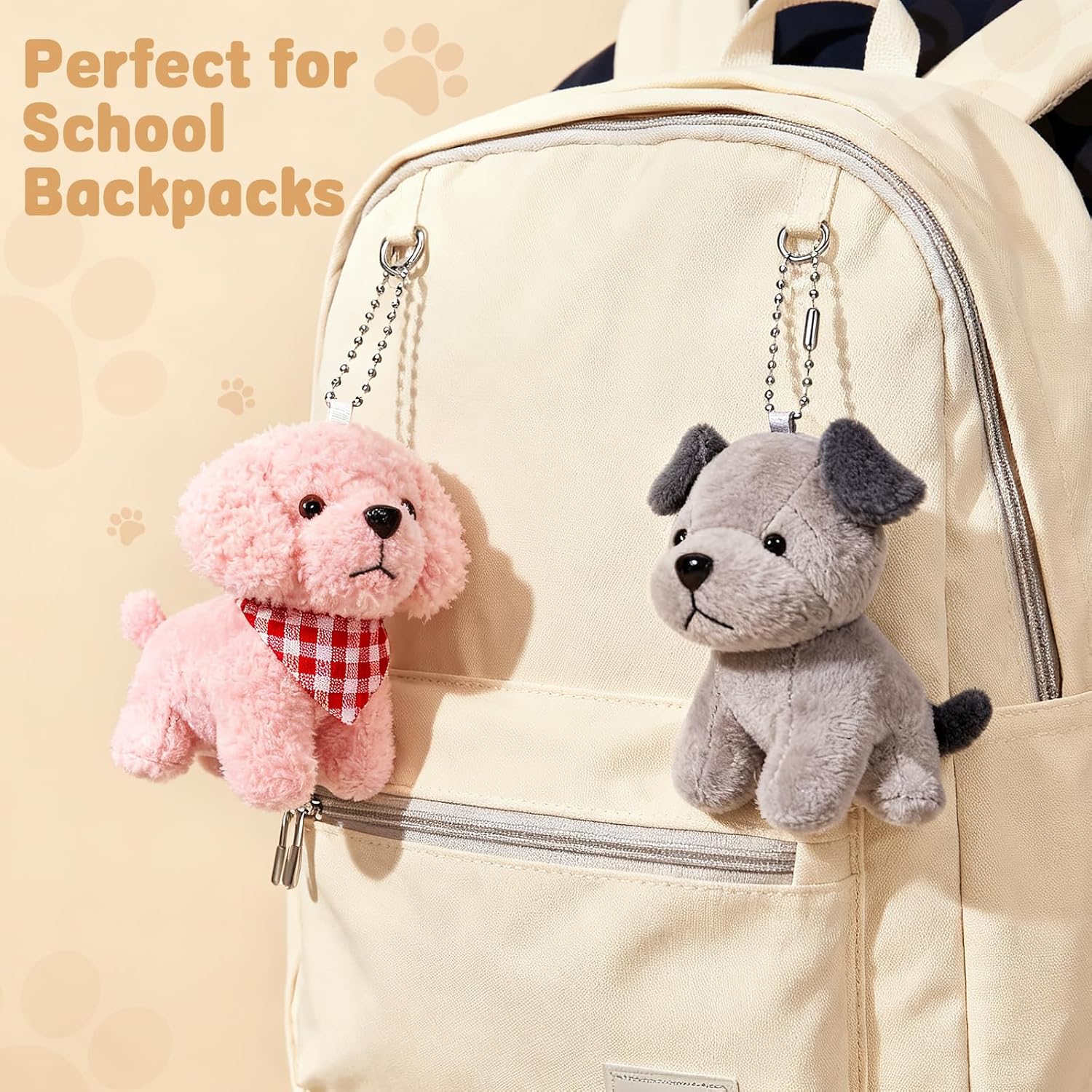 Cute DOG STUFFED PLUSH ANIMAL ORNAMENT: Each one comes equipped with a beads chain,allowing kids to attach them to their keyrings or backpack for safekeeping. These cute small plush keychains are ideal presents for a variety of events –adopt a puppy, adopt class pet and patrol dog birthday party favors for children, Valentine’s Day gift exchanges among kids, kids Christmas stocking stuffers, classroom rewards, arcade claw machine prizes, or as fillers for loot bags.