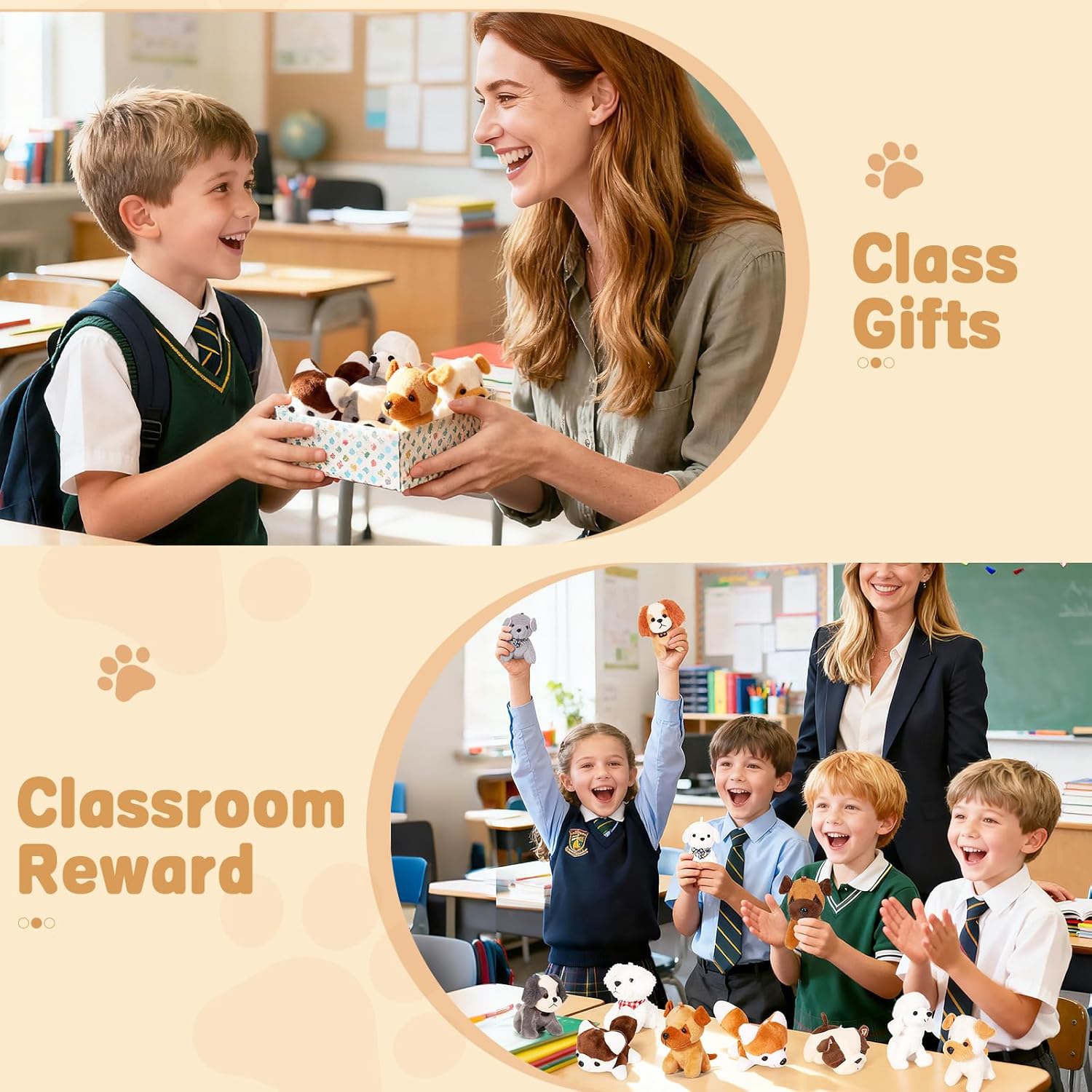 SIZE & MATERIAL: These plush puppies are about 4” height (from toes to head), 3” width and 3.5in length (from head to tail) in size, which is ideal palm size stuffed animal for kids with age 4-10. Made from short ploy materials for a smooth softness!